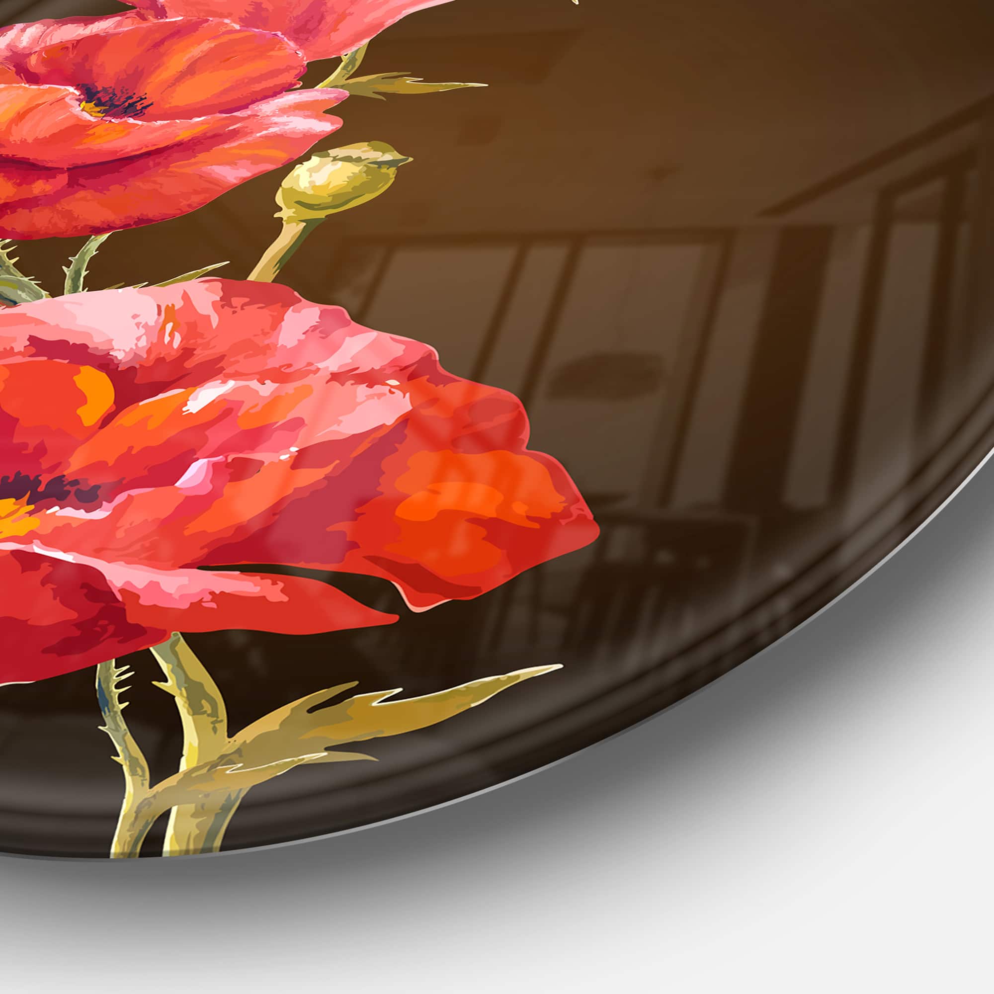 Designart - Bright Poppies Flower' Ultra Glossy Floral Metal Circle Wall Art