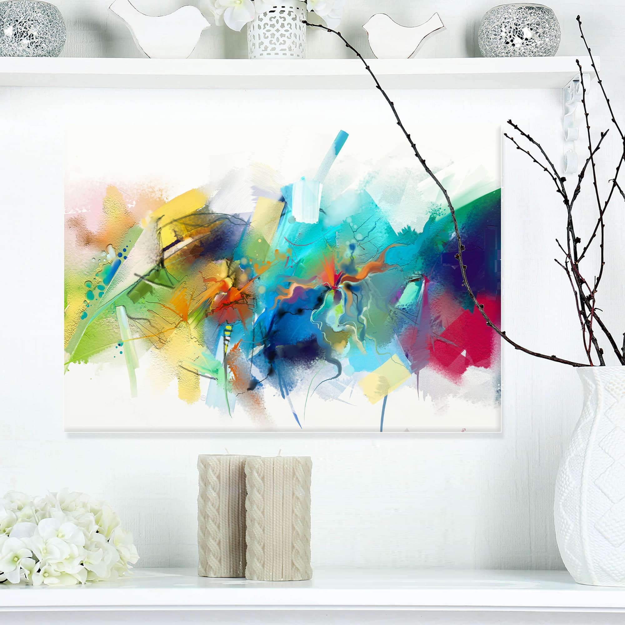 Designart - Brush Stroke Colorful Oil Painting - Contemporary Painting Print on Wrapped Canvas