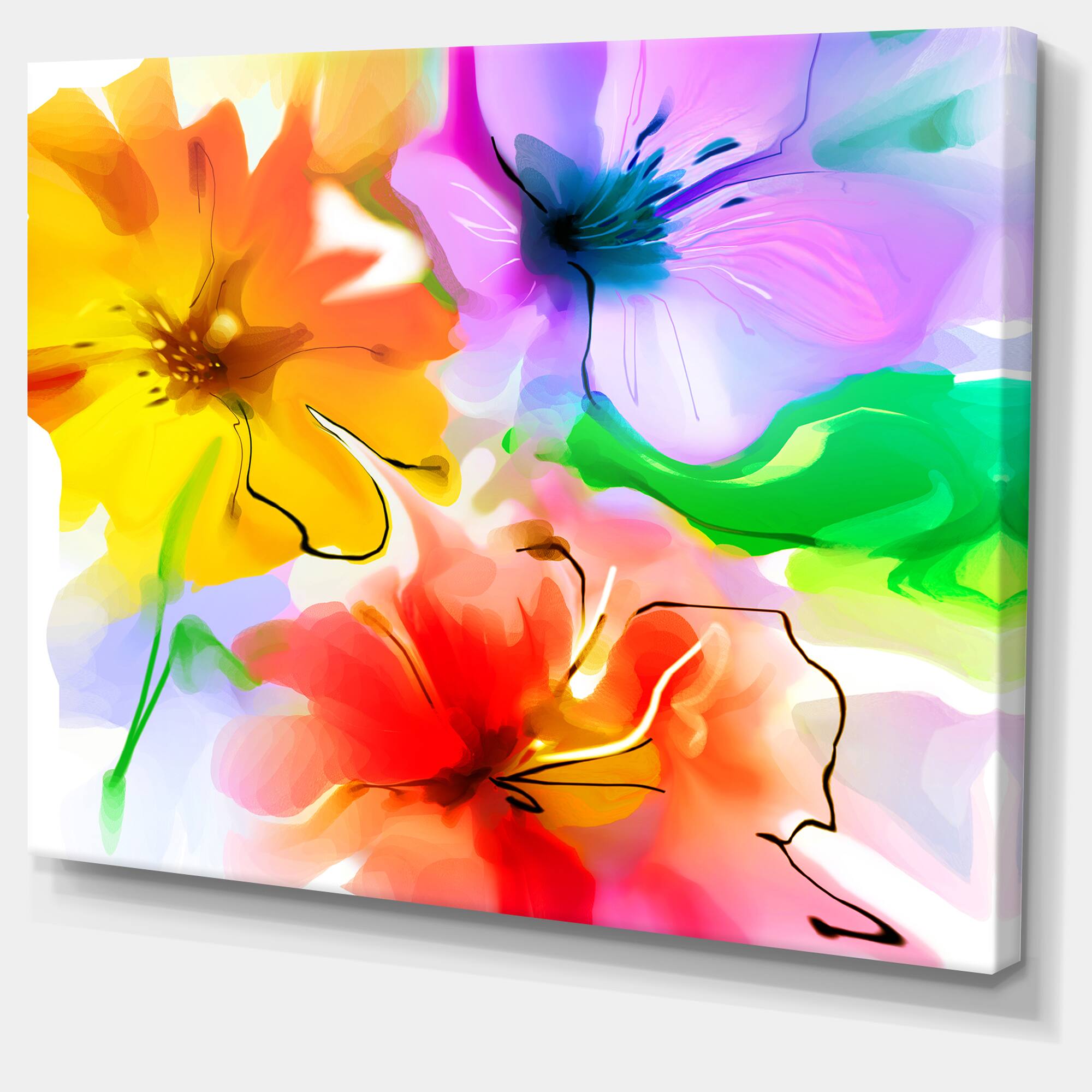 Designart - Bunch of Colorful Flowers Sketch - Extra Large Floral Wall Art