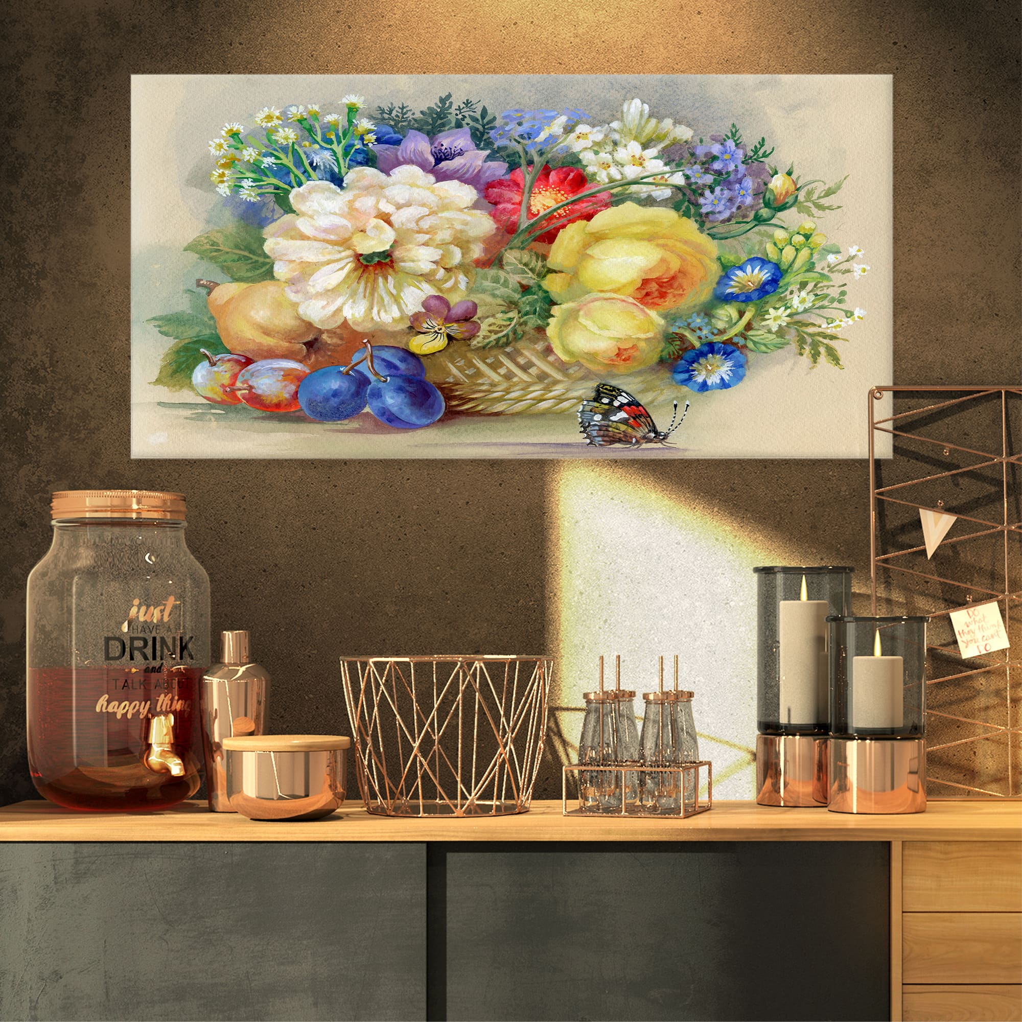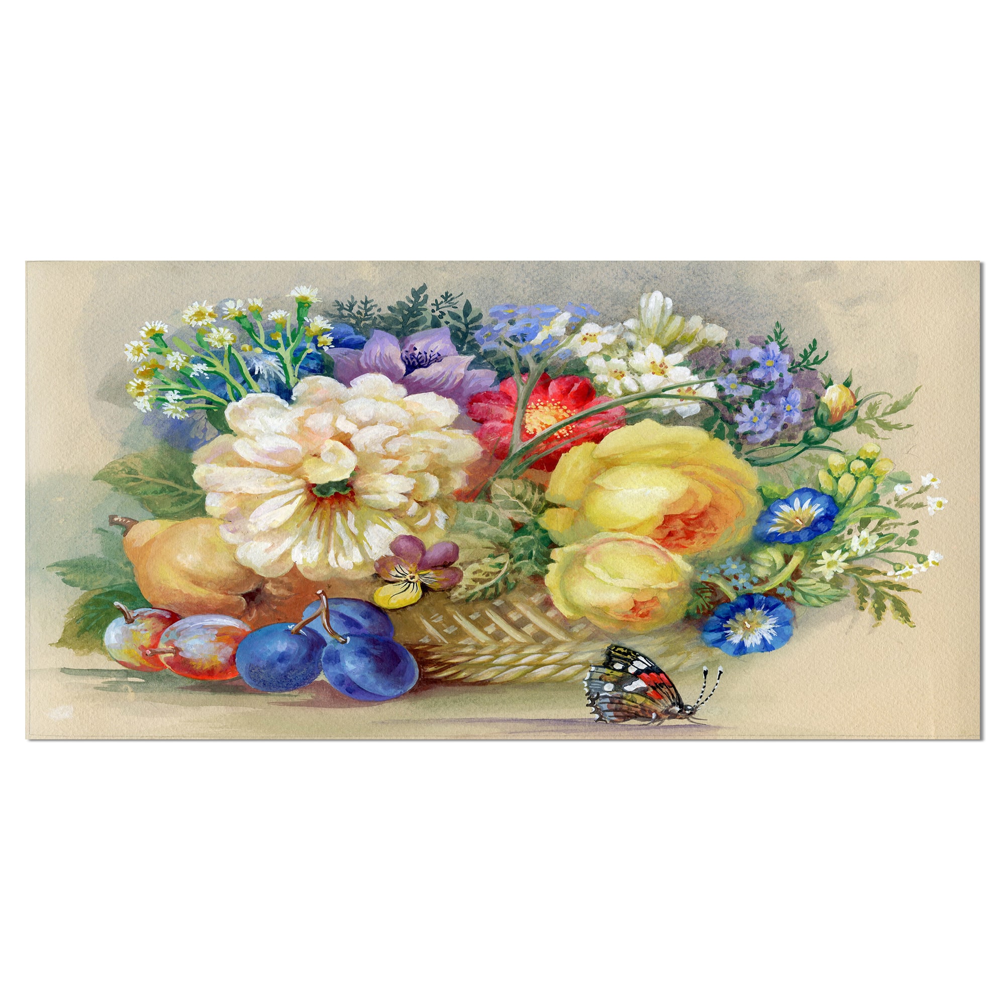 Designart - Bunch of Flowers and Fruits - Large Floral Wall Art Canvas