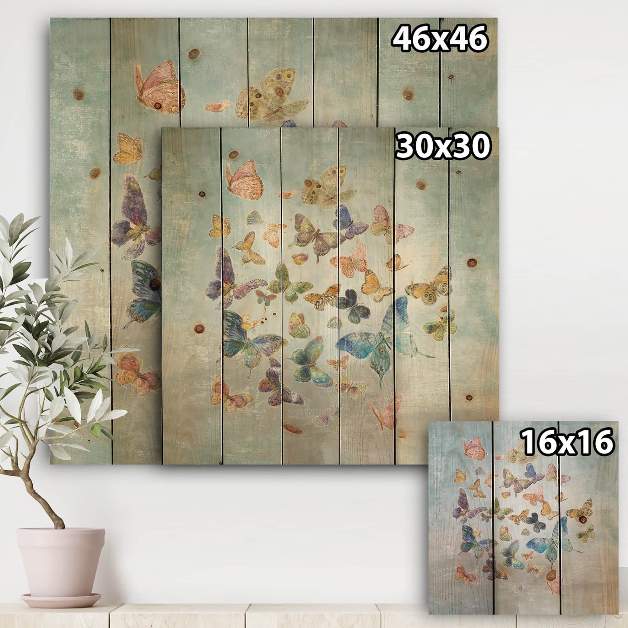 Designart - Butterflies Dancing I - Wildlife Print on Natural Pine Wood
