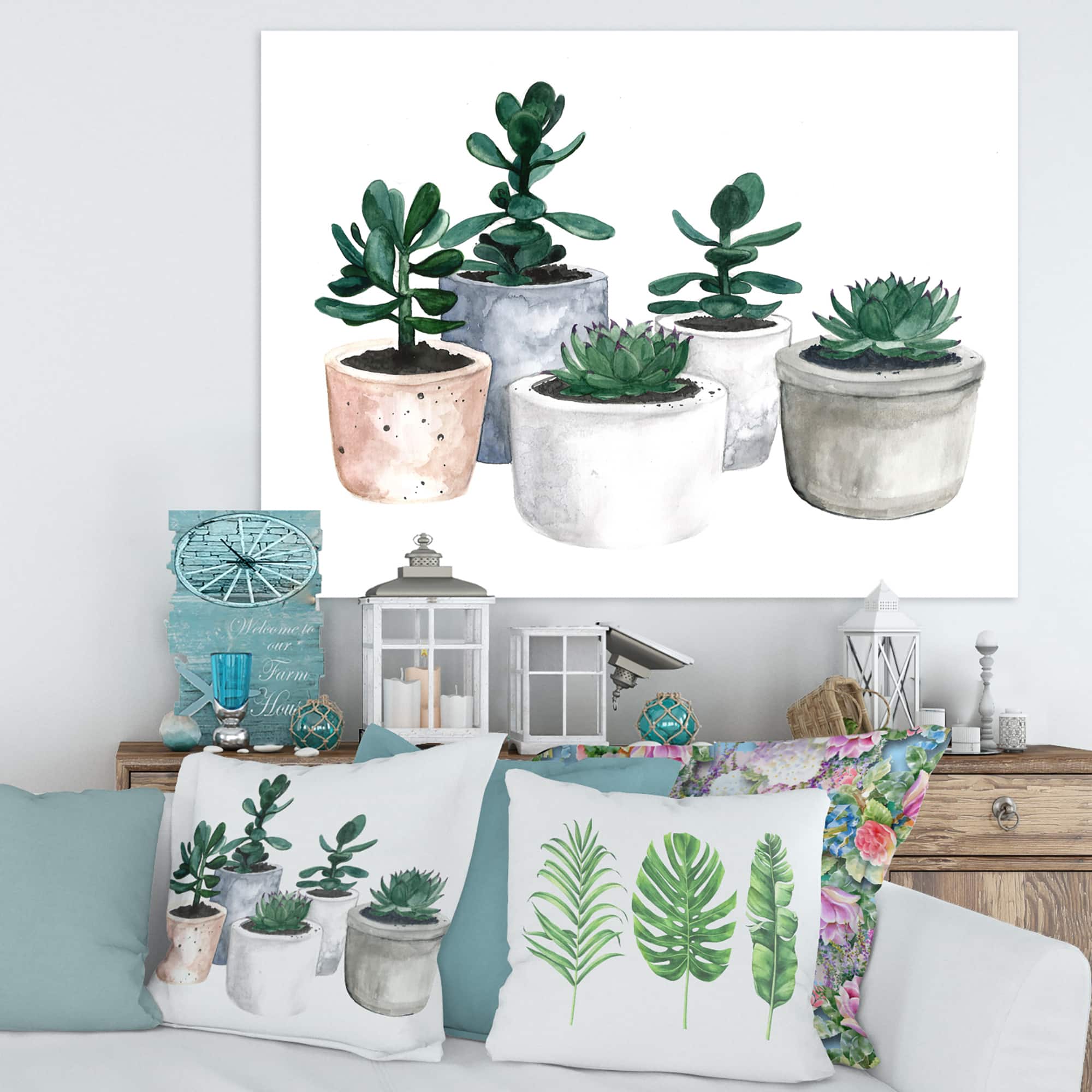 Designart - Cactus and Succulent House Plants VI - Farmhouse Canvas Wall Art Print
