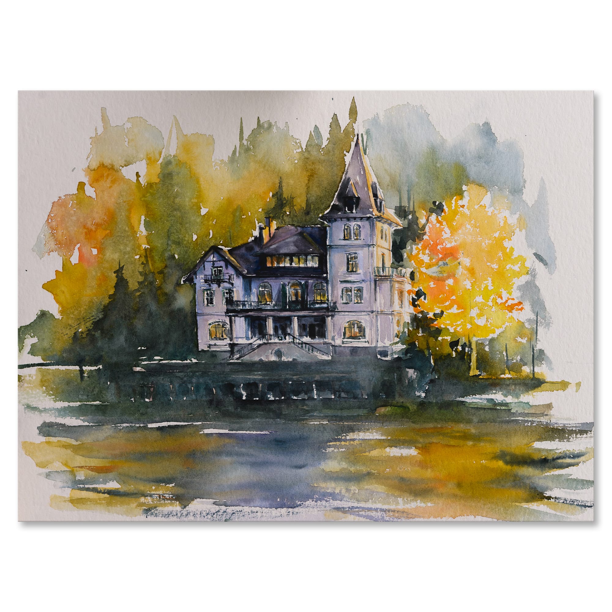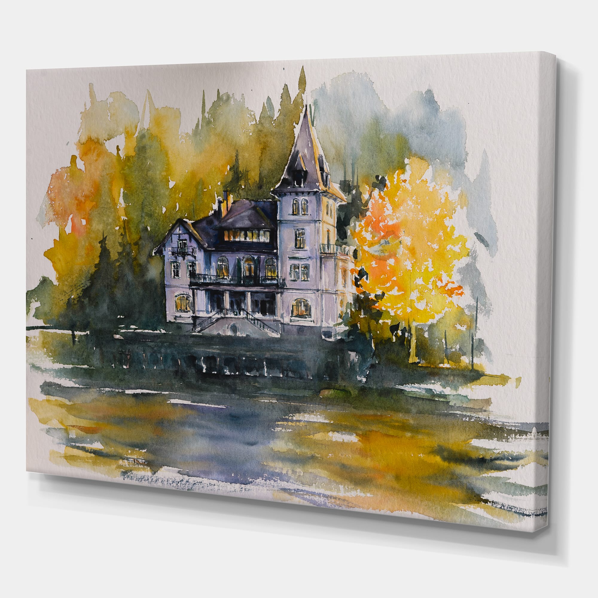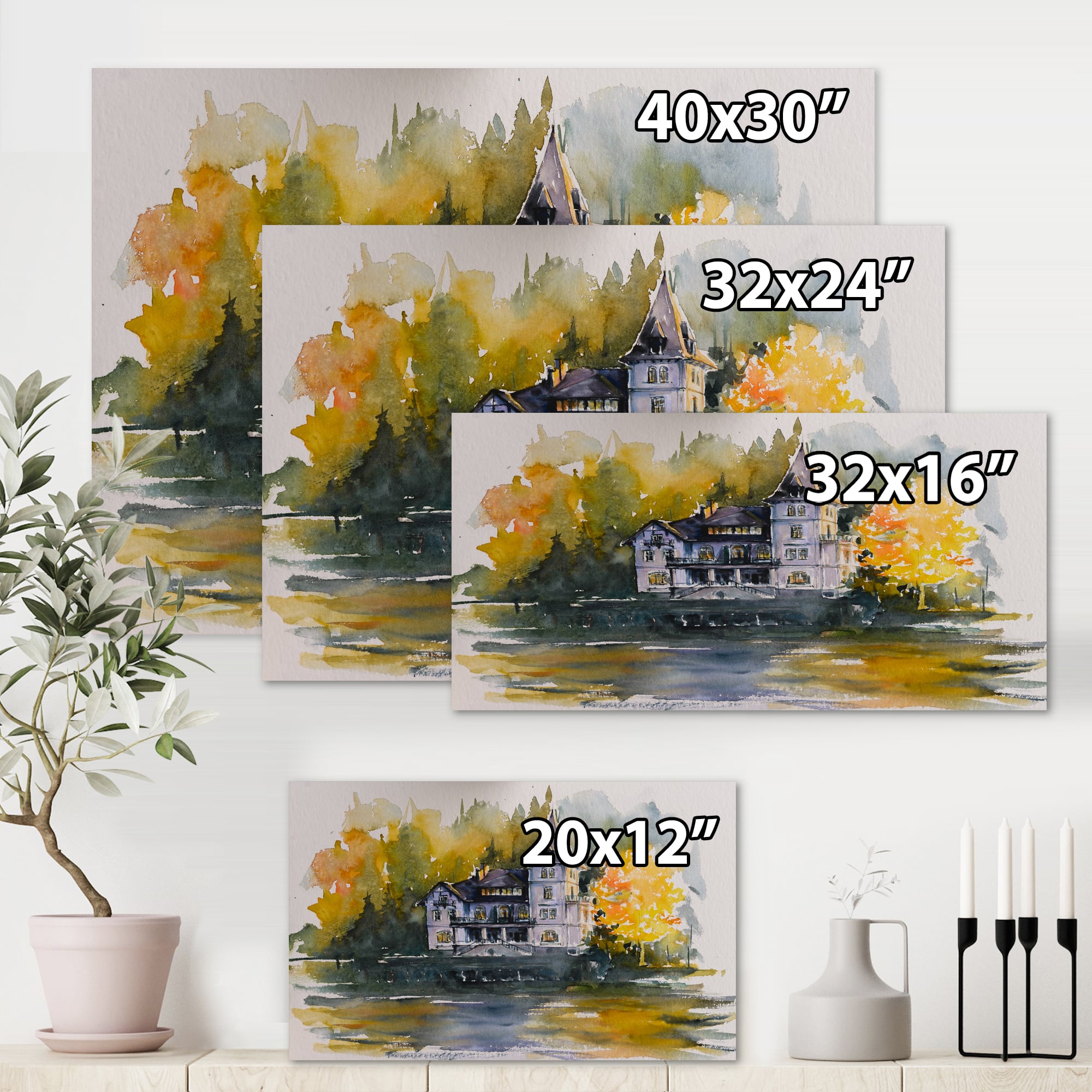Designart - Castle By The Lake With Autumn Trees - Lake House Canvas Wall Art Print