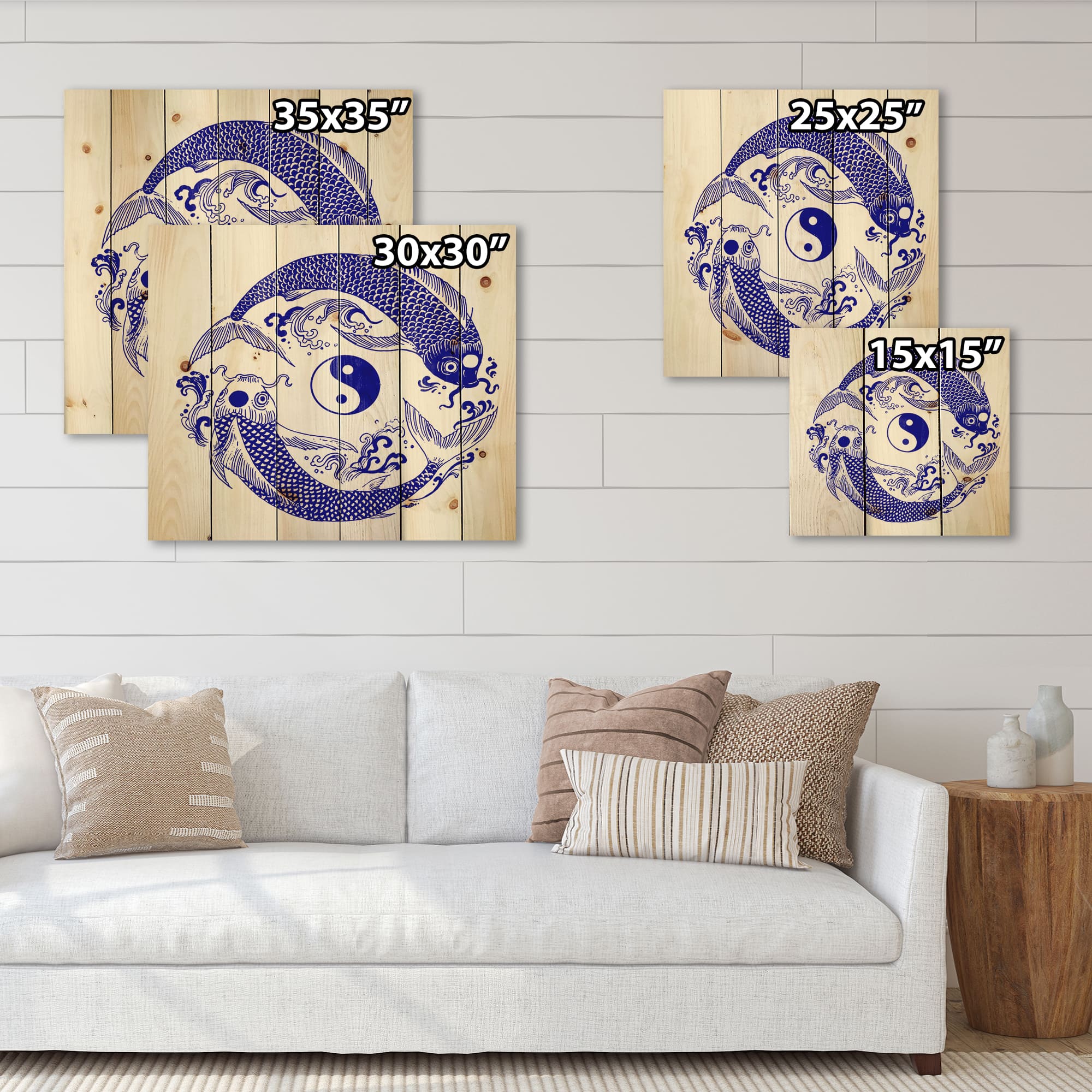 Designart - Chinoiserie Koi Fish II - Traditional Print on Natural Pine Wood