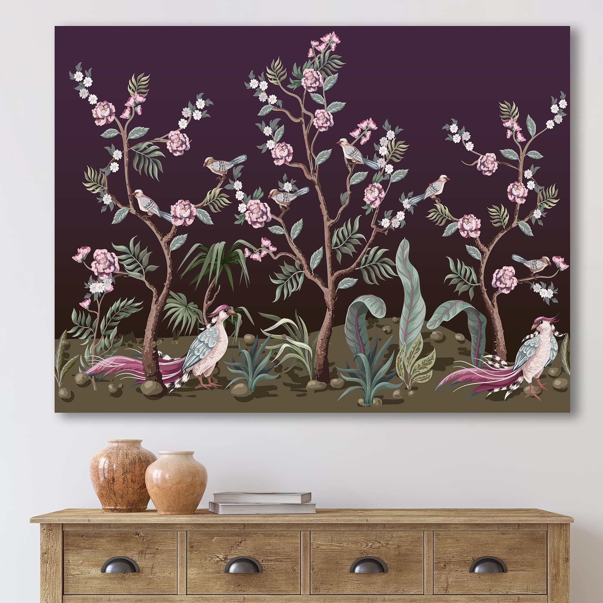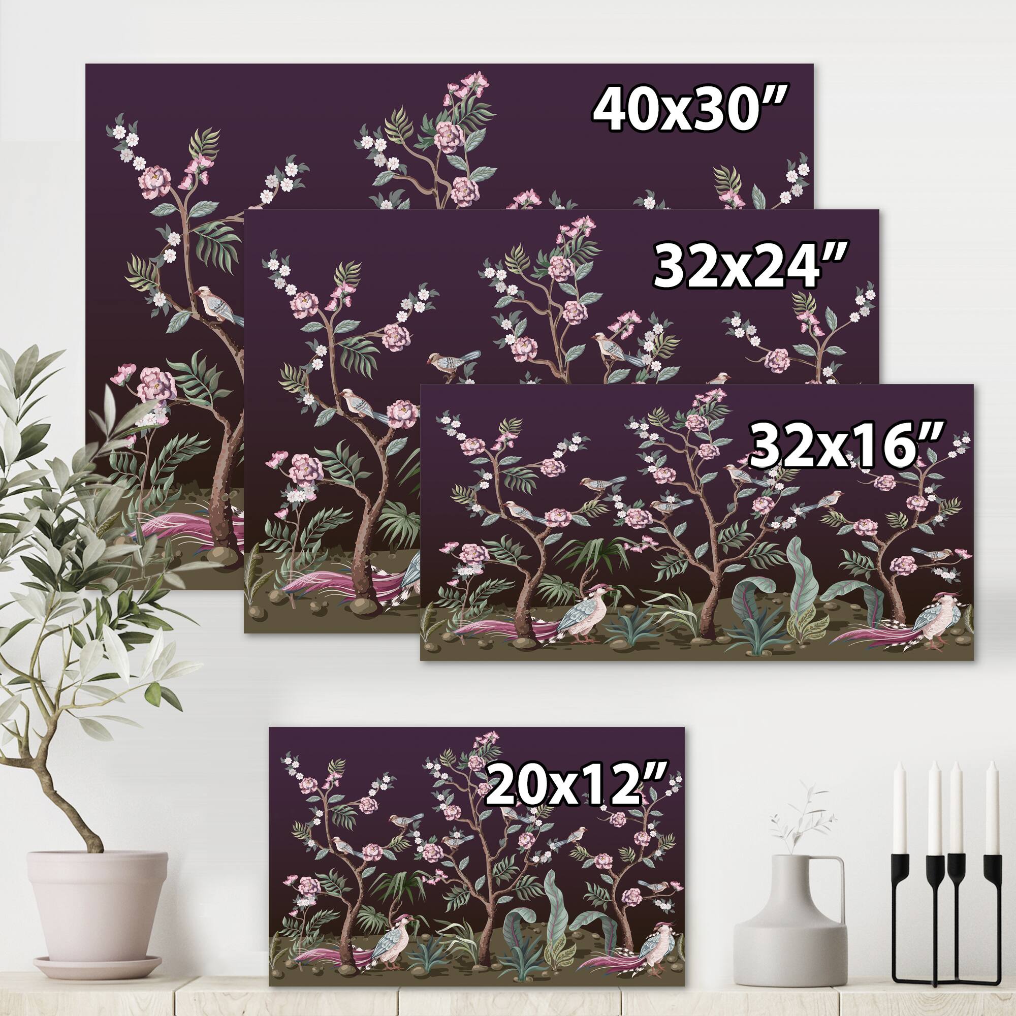 Designart - Chinoiserie With Birds and Peonies I - Traditional Canvas Wall Art Print