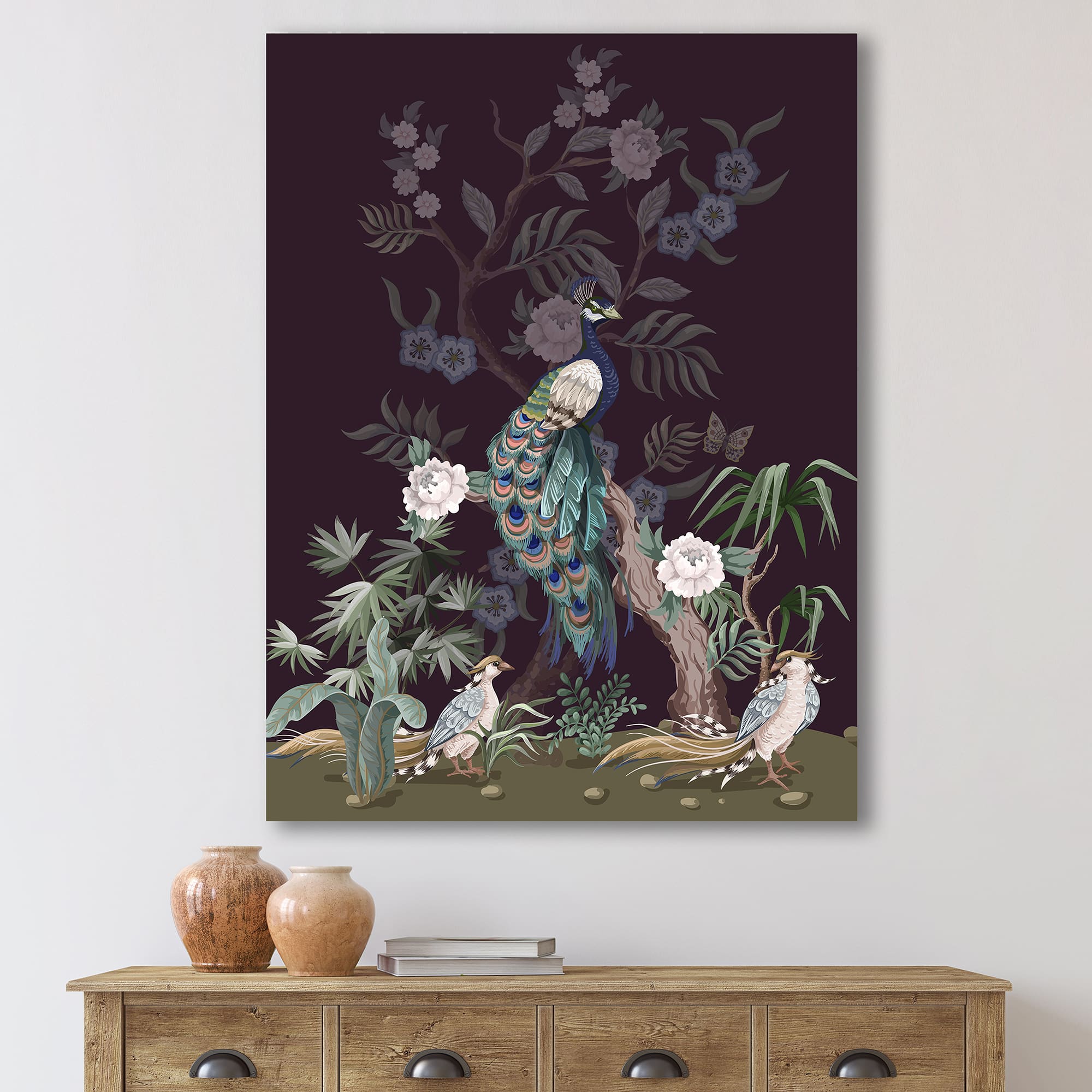 Designart - Chinoiserie With Birds and Peonies V - Traditional Canvas Wall Art Print