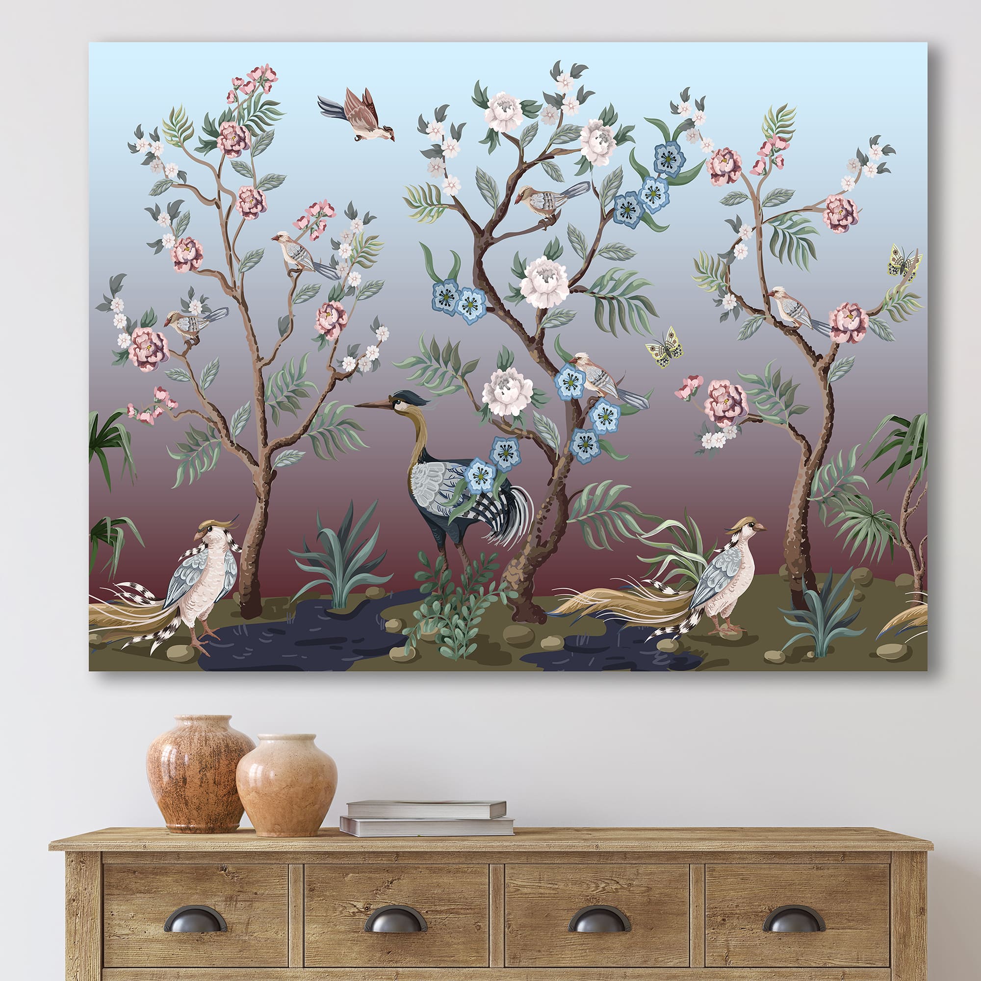 Designart - Chinoiserie With Birds and Peonies XI - Traditional Canvas Wall Art Print
