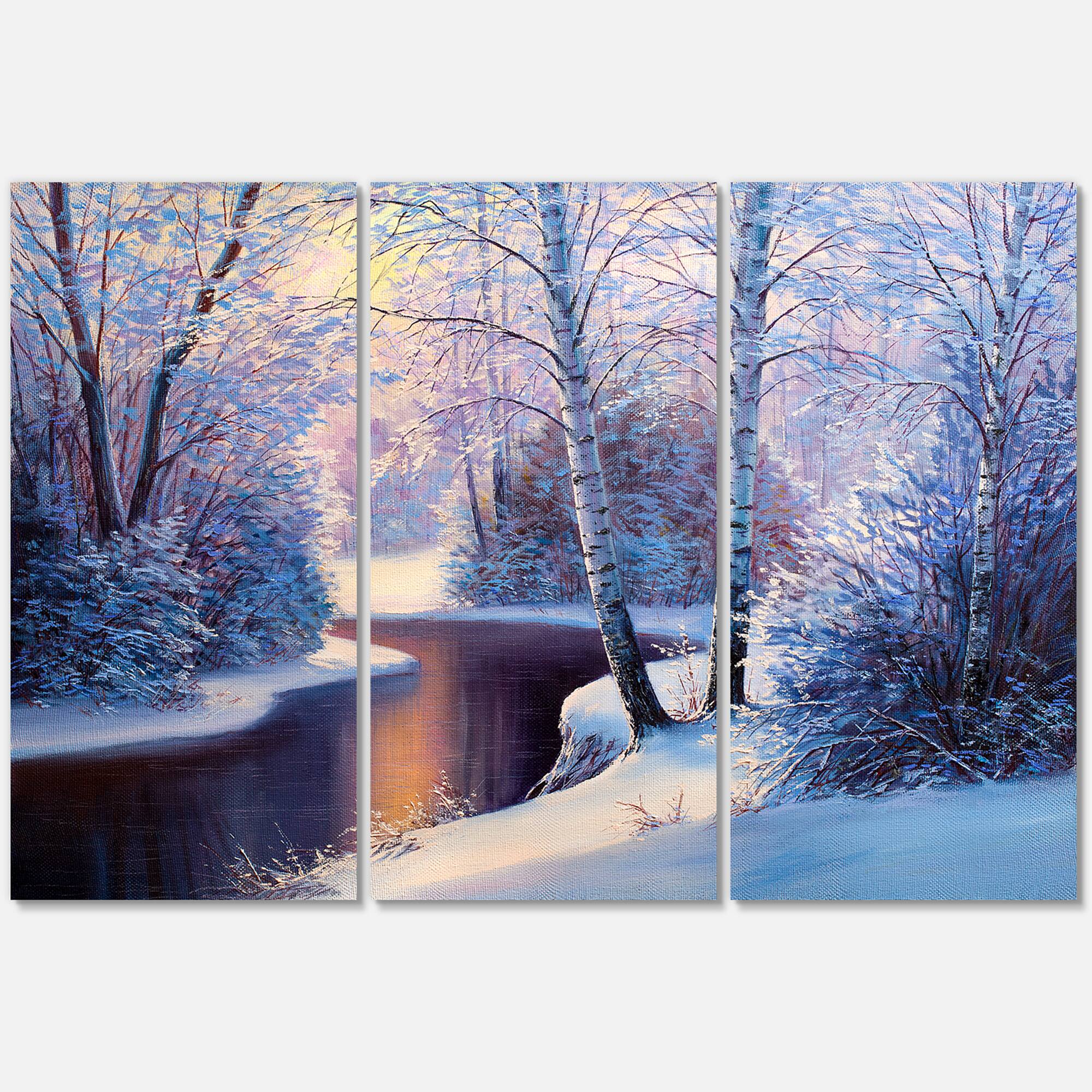 Designart - Christmas Forest With River and Trees I - Traditional Canvas Wall Art Print