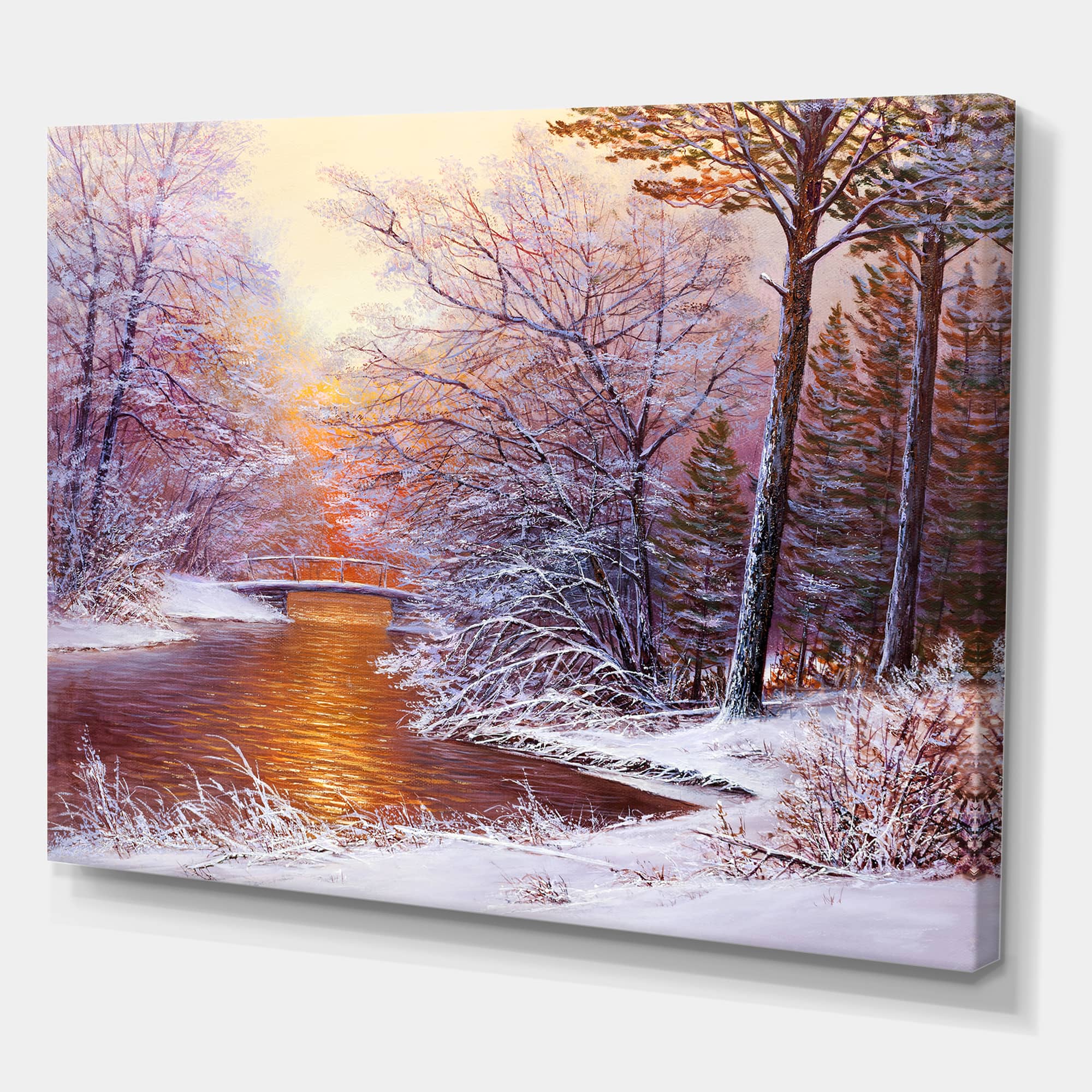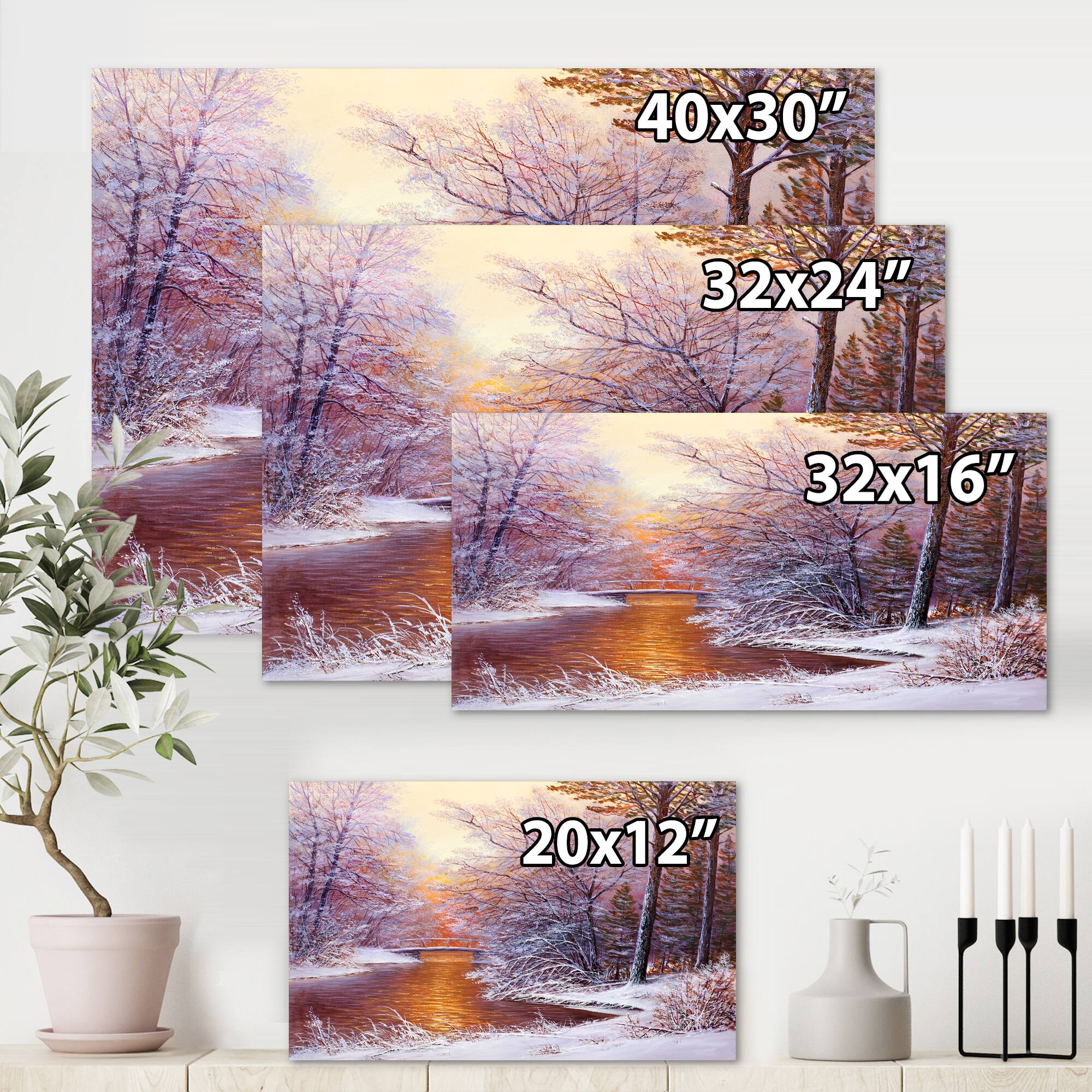Designart - Christmas Forest With River and Trees II - Traditional Canvas Wall Art Print