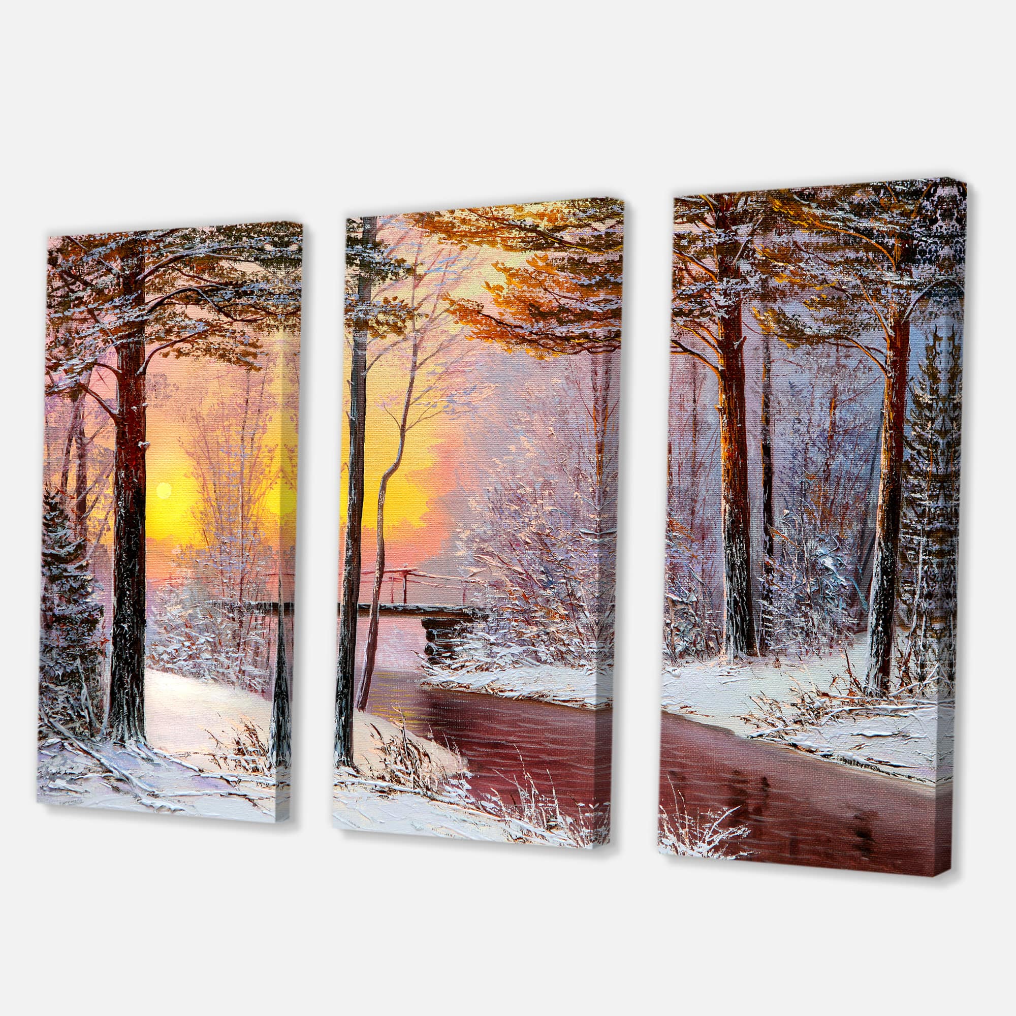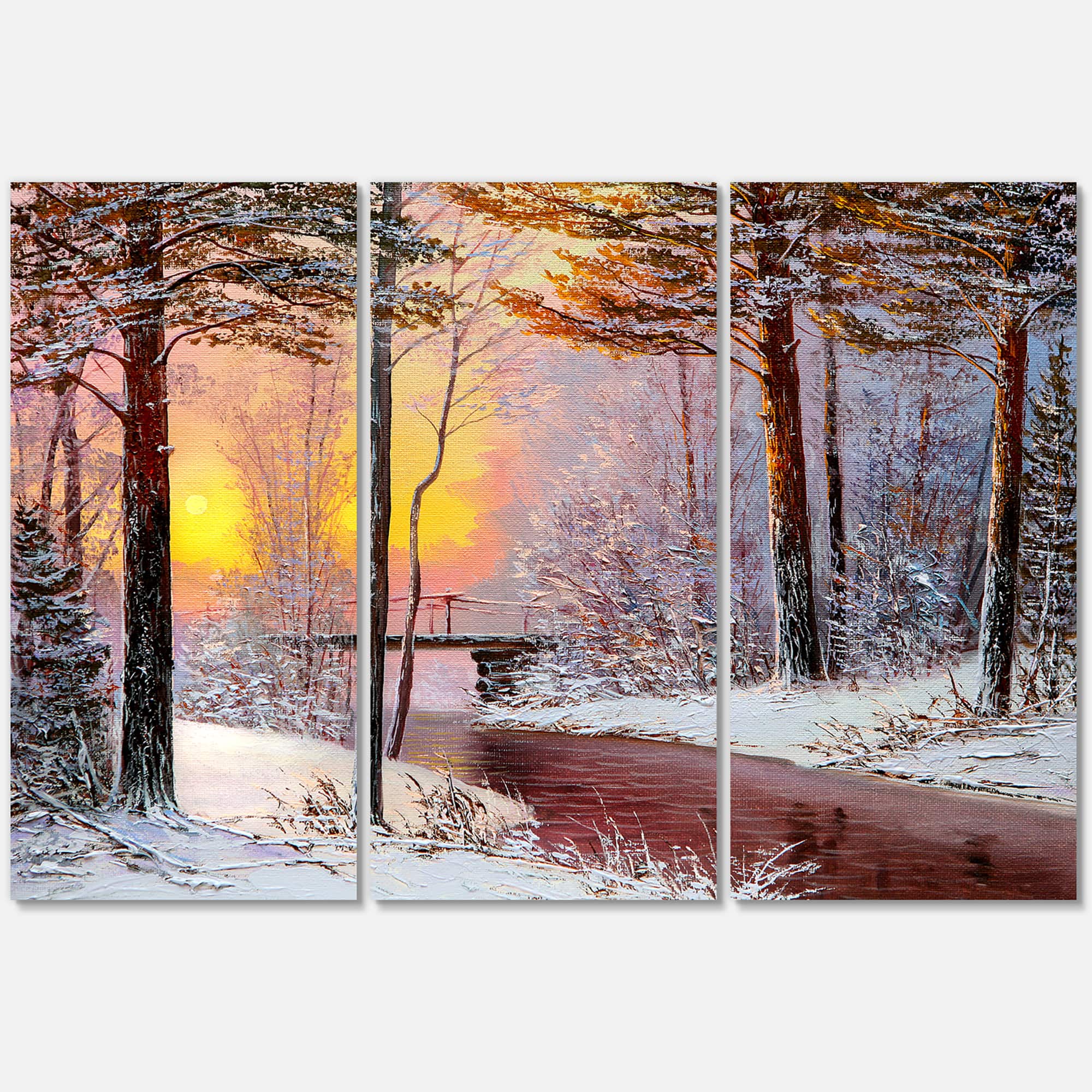 Designart - Christmas Forest With River and Trees IV - Traditional Canvas Wall Art Print