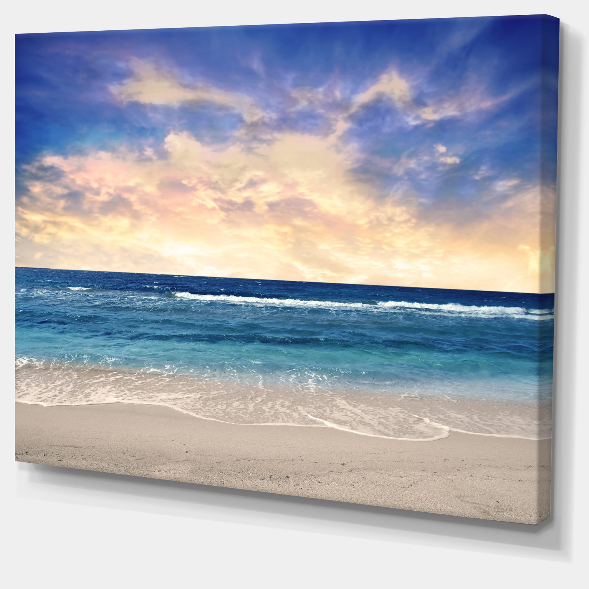 Designart - Clear Blue Sky and Ocean at Sunset - Extra Large Seascape Art Canvas