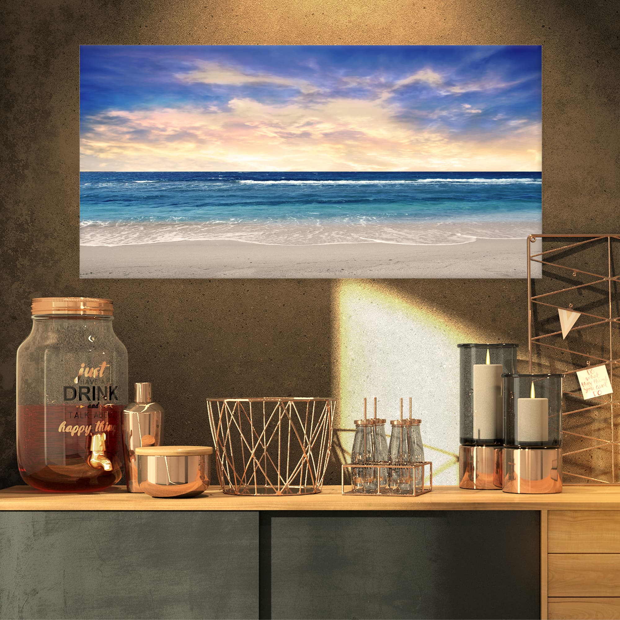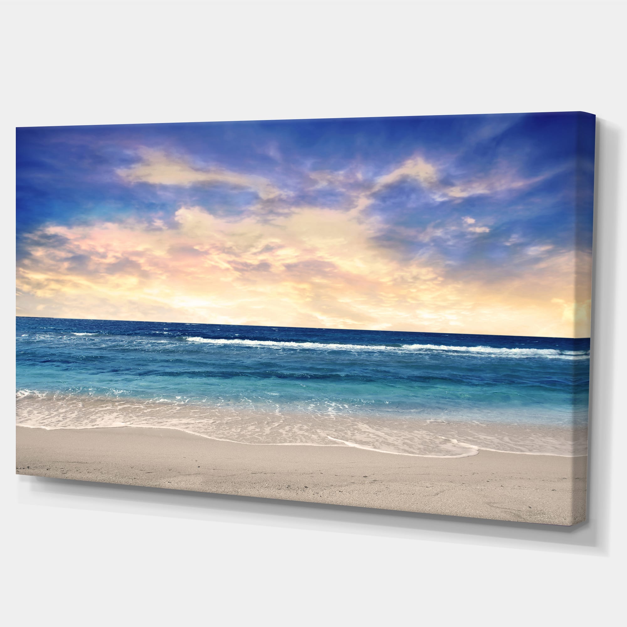Designart - Clear Blue Sky and Ocean at Sunset - Extra Large Seascape Art Canvas