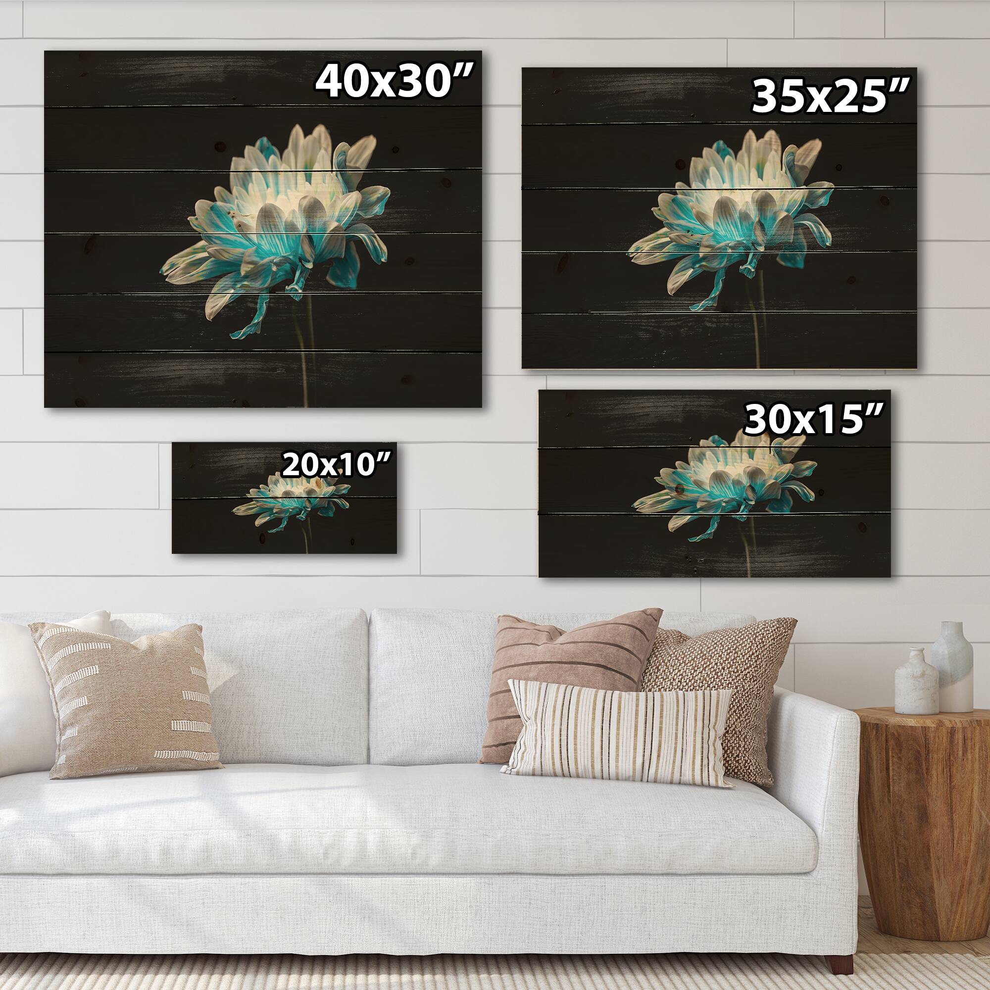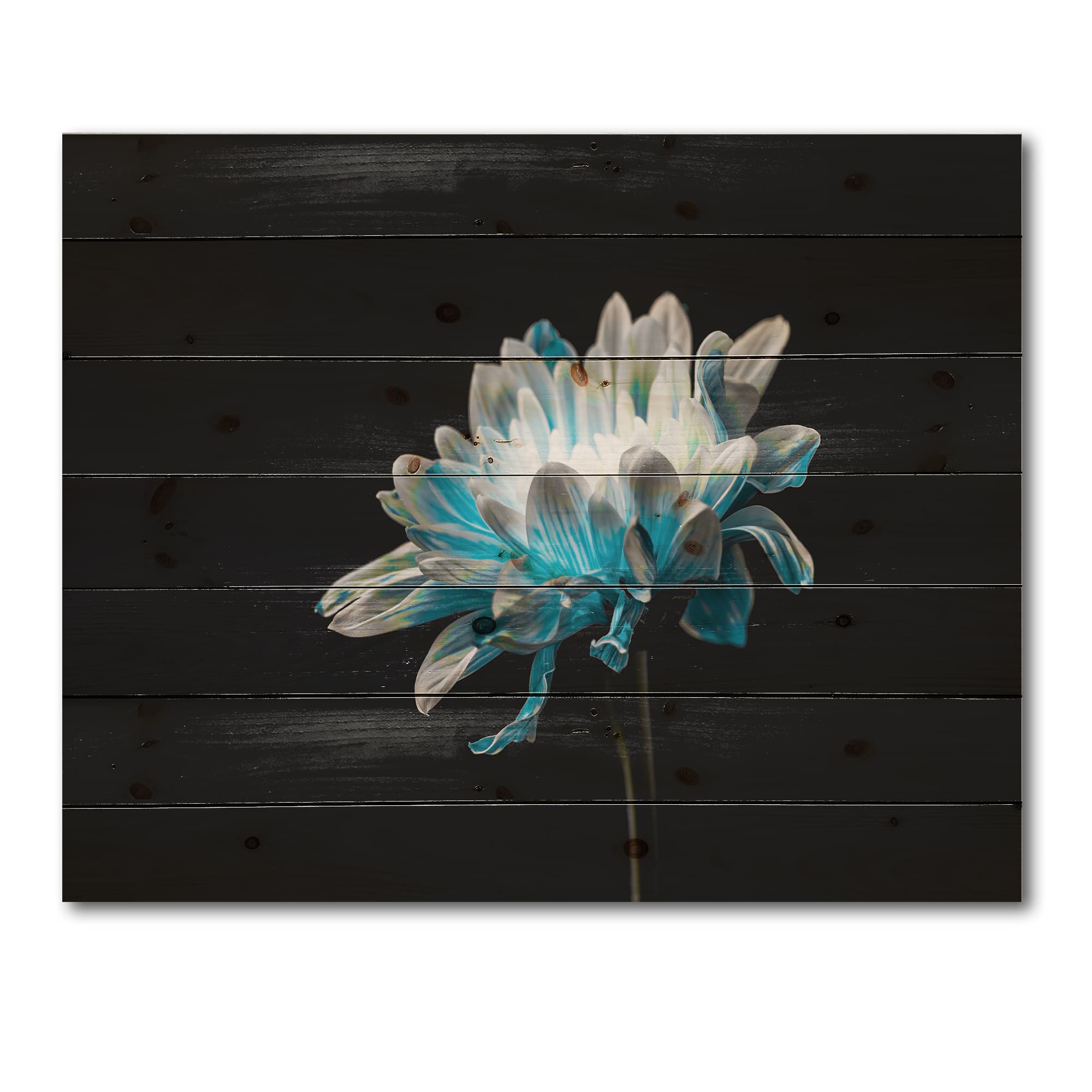 Designart - Close Up Of Pure Blue and White Daisy Flower I - Traditional Print on Natural Pine Wood