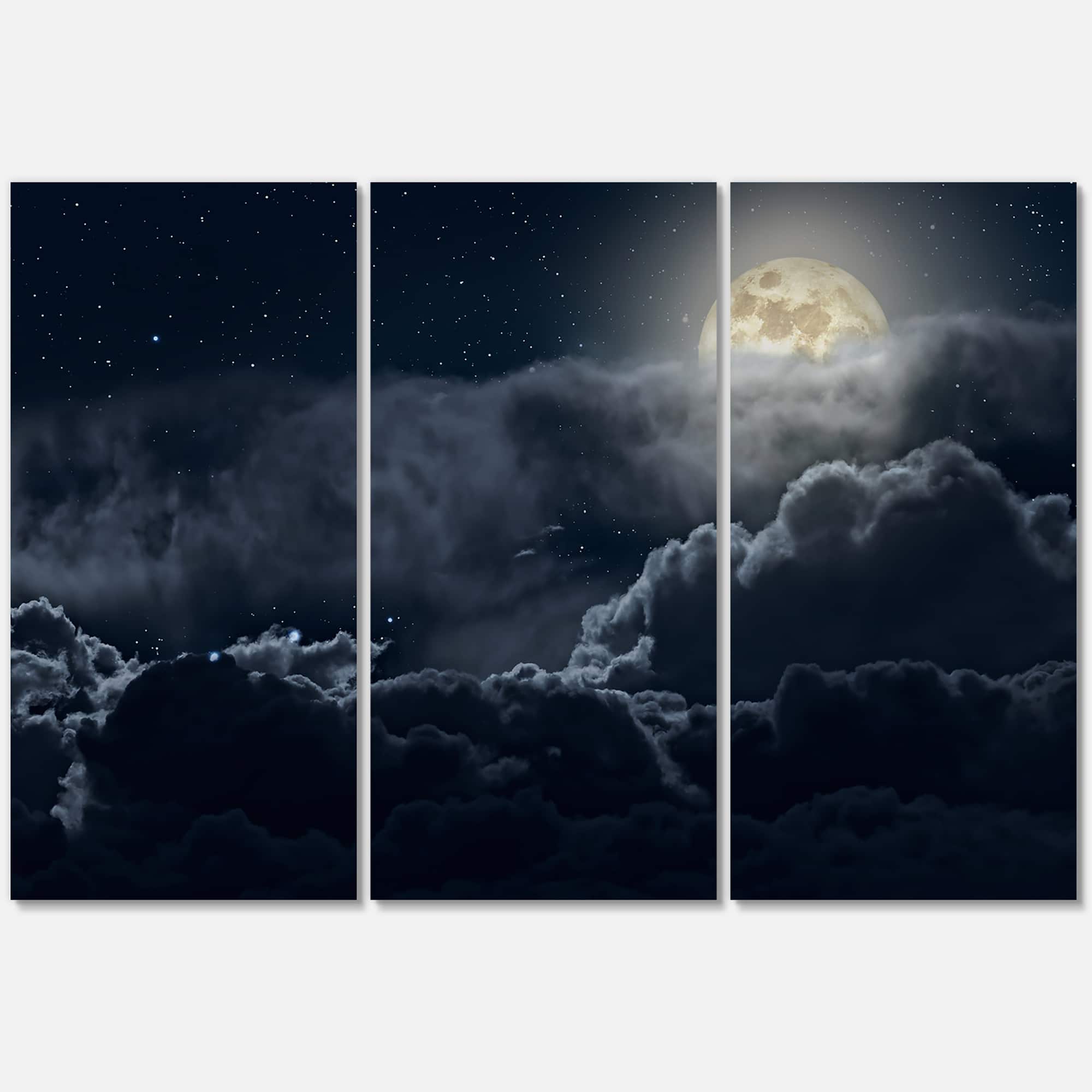 Designart - Cloudy Full Moon Night - Nautical & Coastal Canvas Wall Art Print