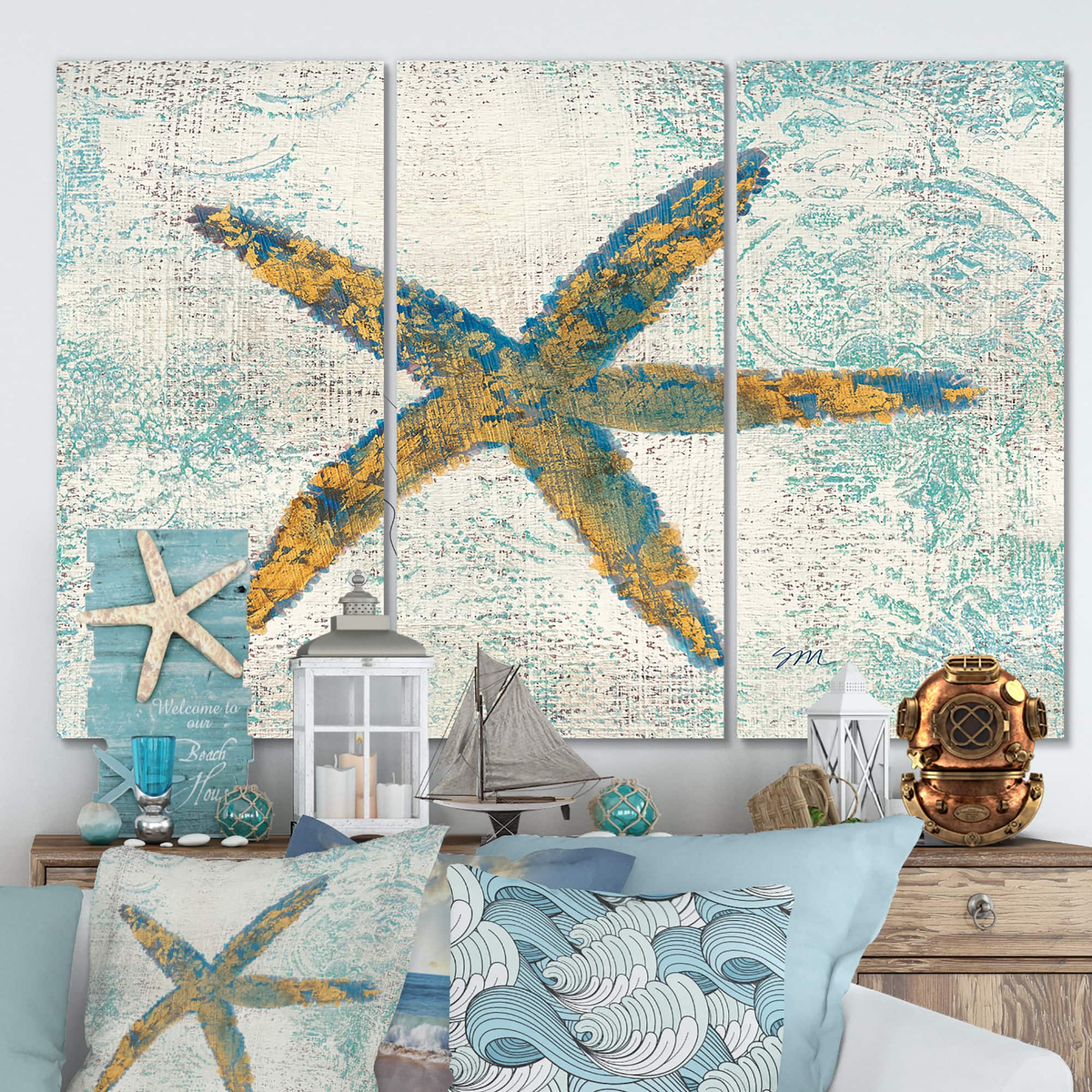 Designart - Coastal Pastel seashells III - Vintage Nautical Canvas Art
