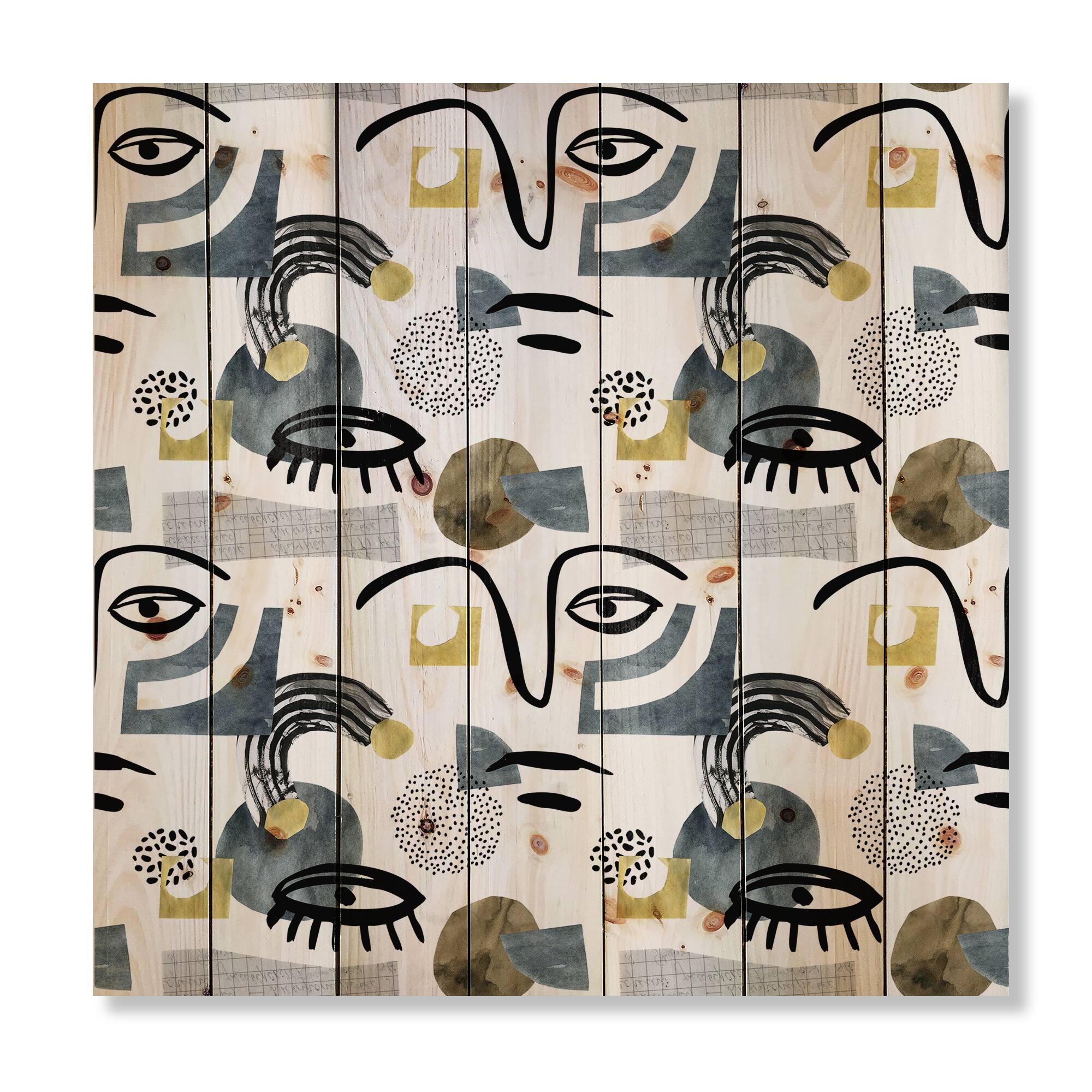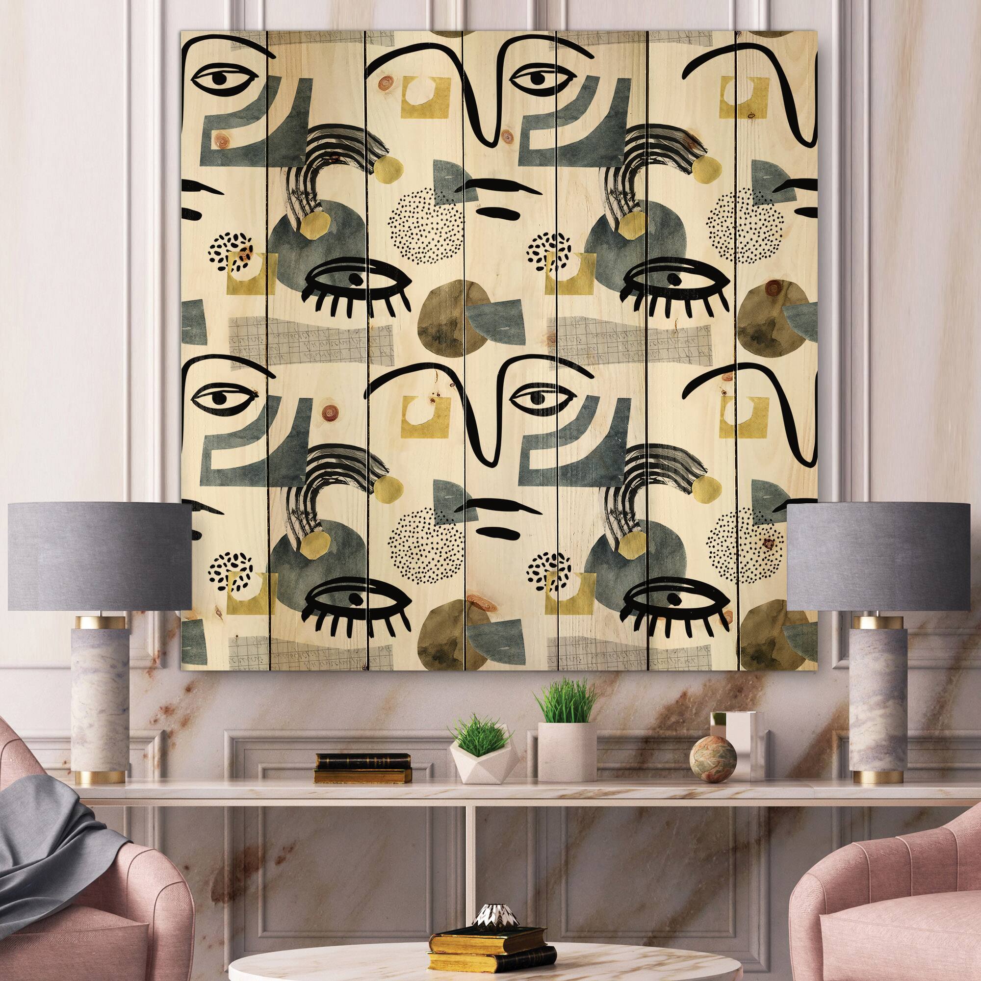 Designart - Collage of Eyes & Doodles In Contemporary Style I - Modern Print on Natural Pine Wood