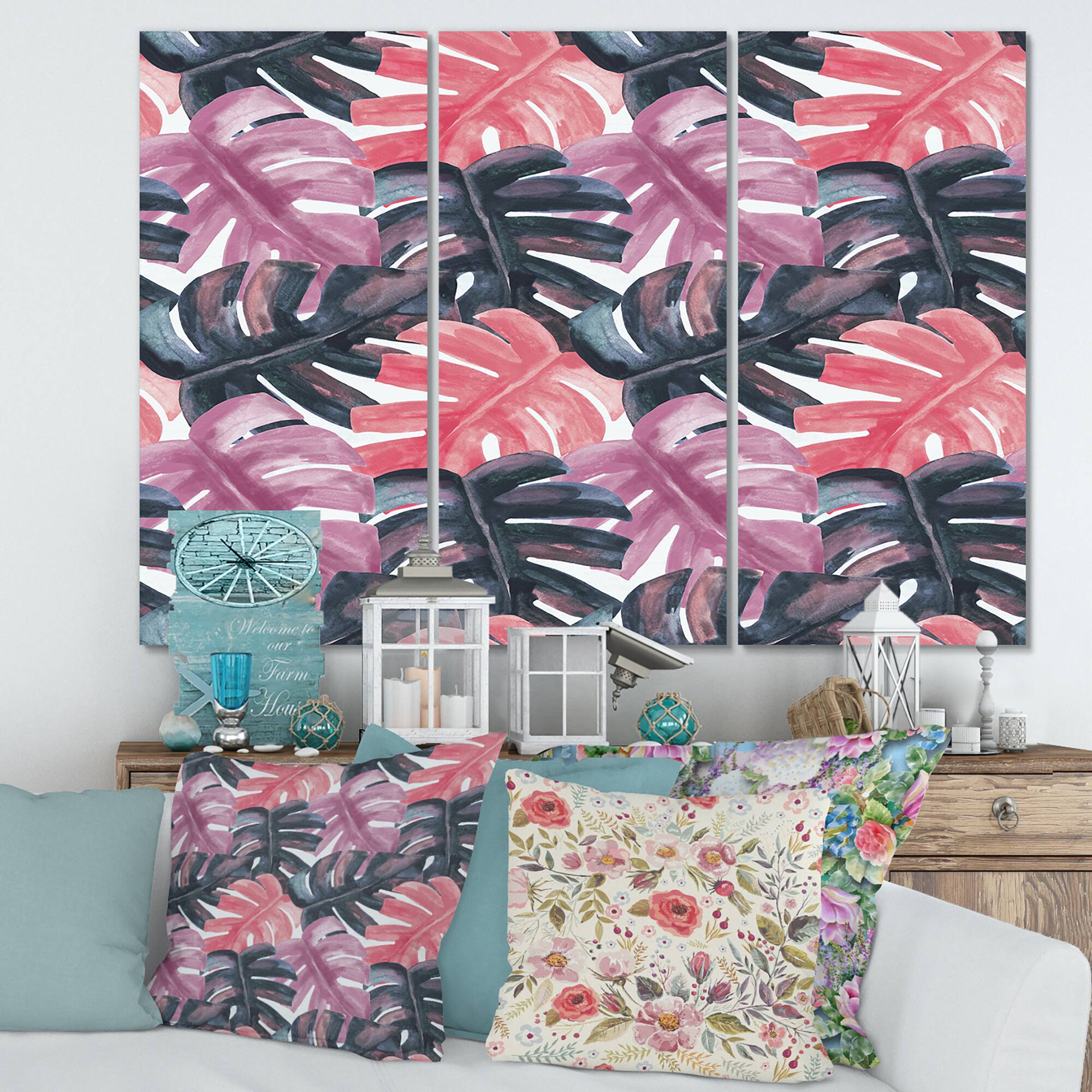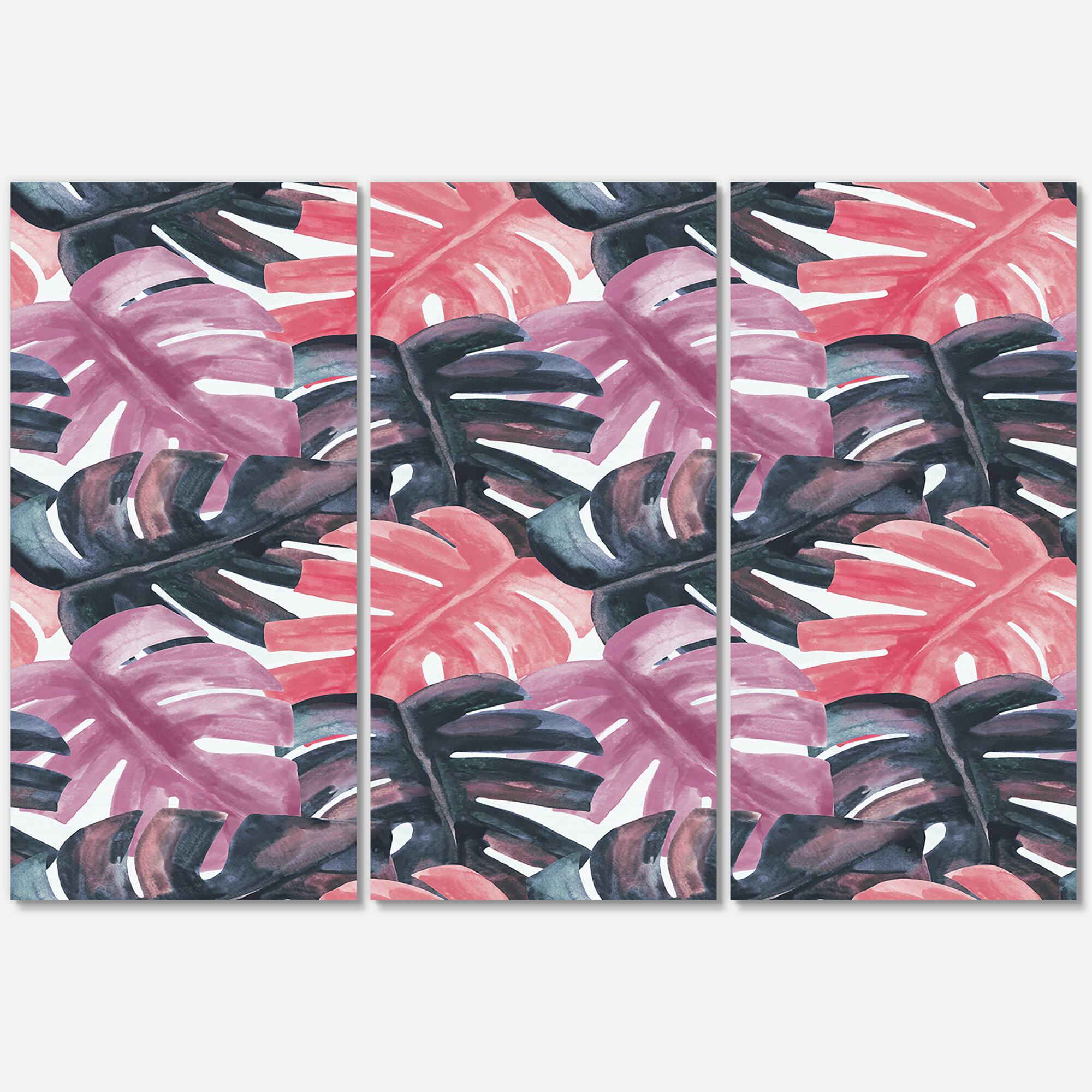 Designart - Colored Monstera On Rough Brush Strokes II - Tropical Canvas Wall Art Print