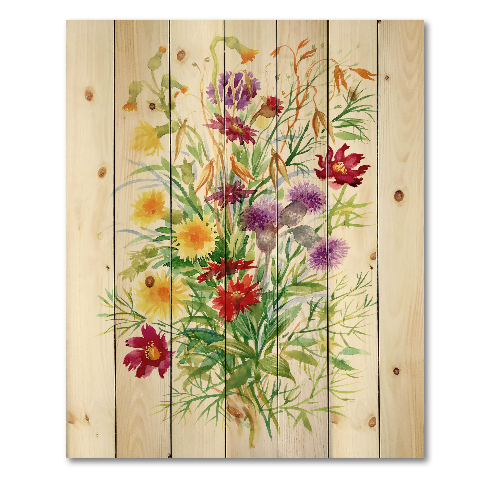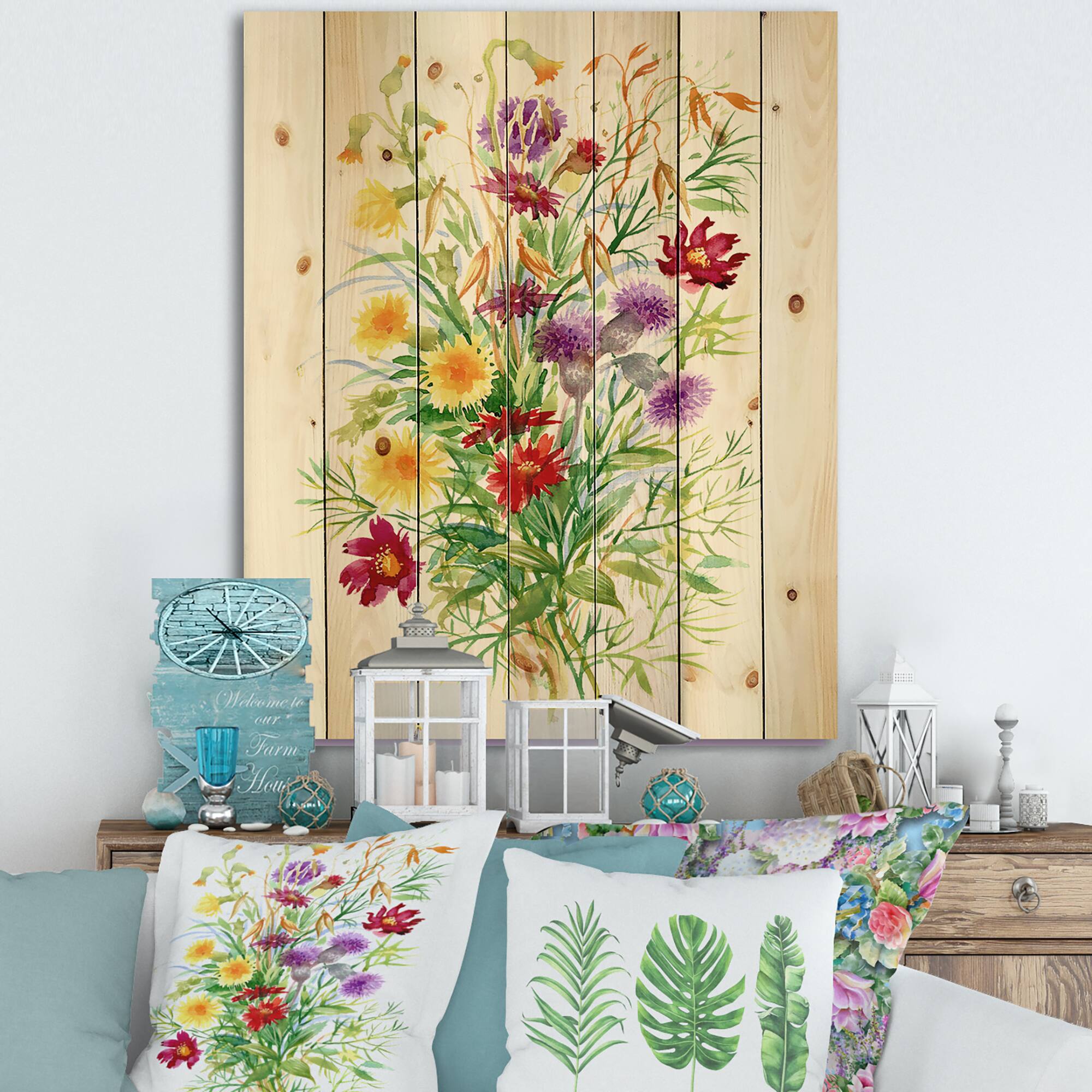 Designart - Colorful Wildflowers In Nature - Farmhouse Print on Natural Pine Wood