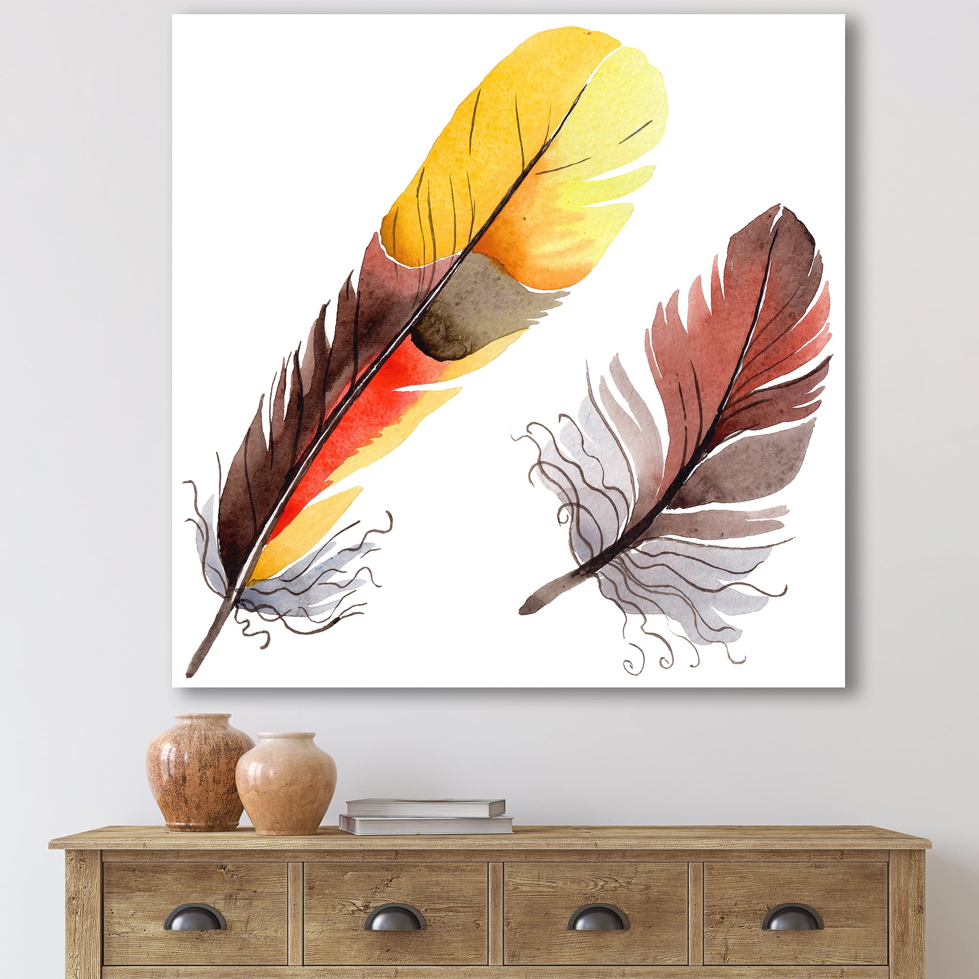Designart - Colourful Boho Feathers IV - Bohemian & Eclectic Canvas Wall Art Print