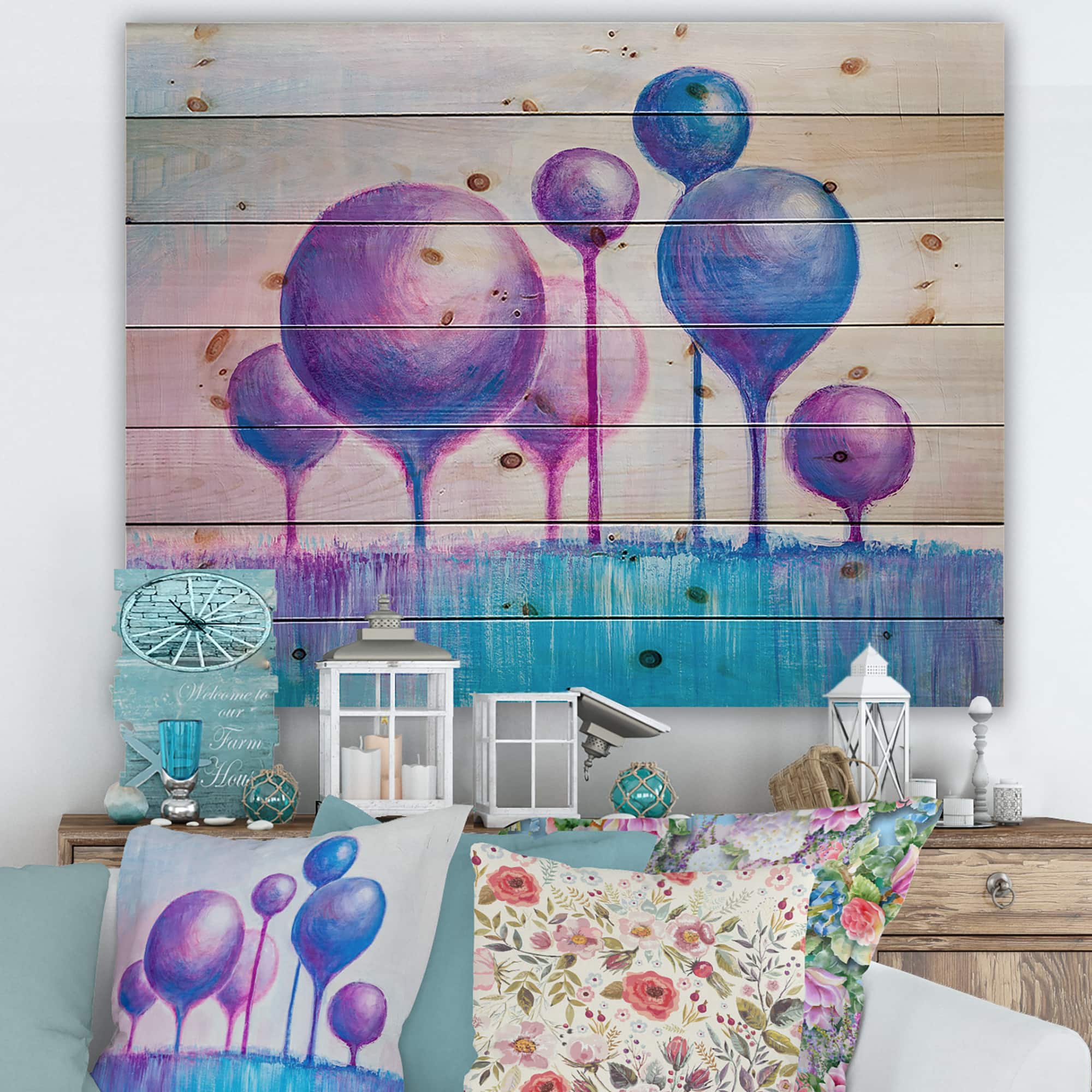 Designart - Colourful Ornamental Trees I - Modern Print on Natural Pine Wood
