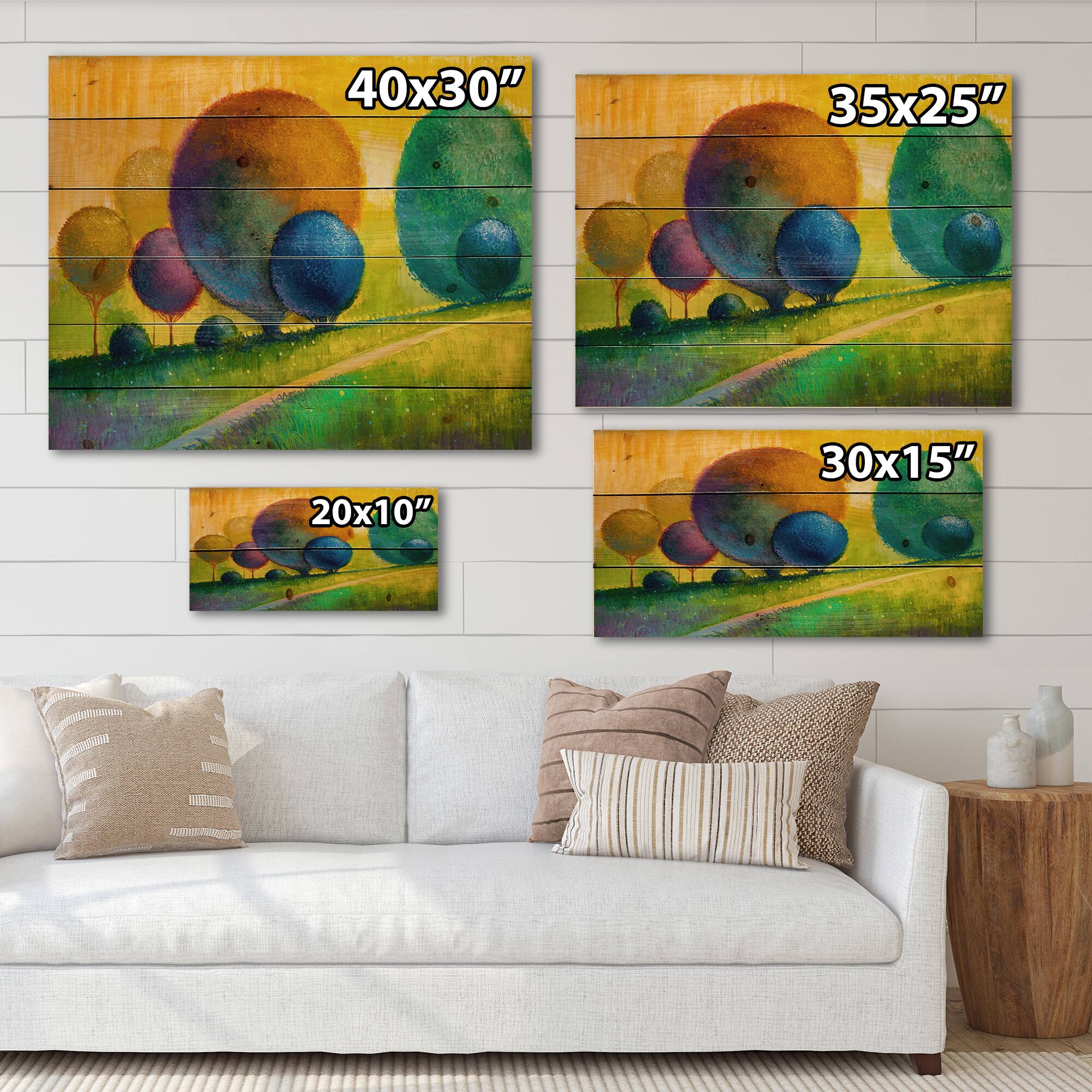 Designart - Colourful Ornamental Trees III - Modern Print on Natural Pine Wood