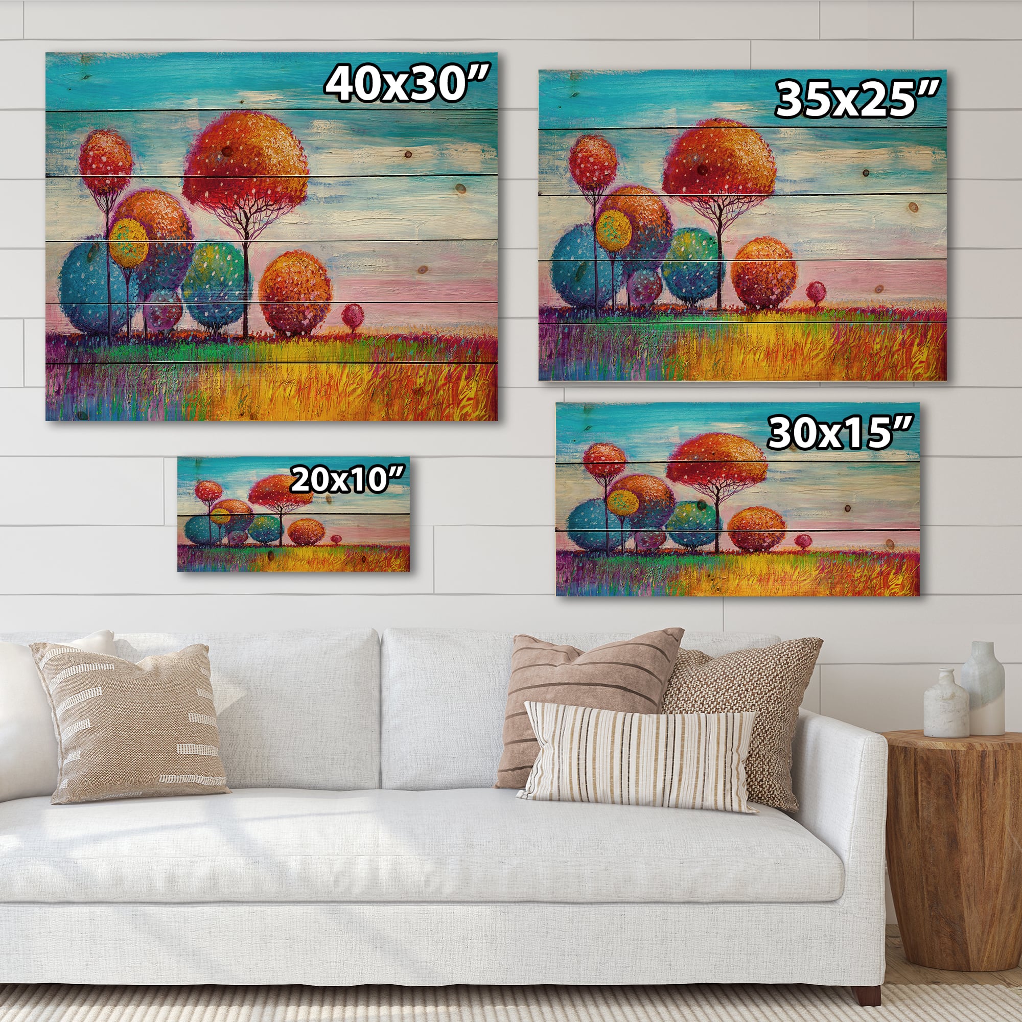 Designart - Colourful Ornamental Trees IX - Modern Print on Natural Pine Wood