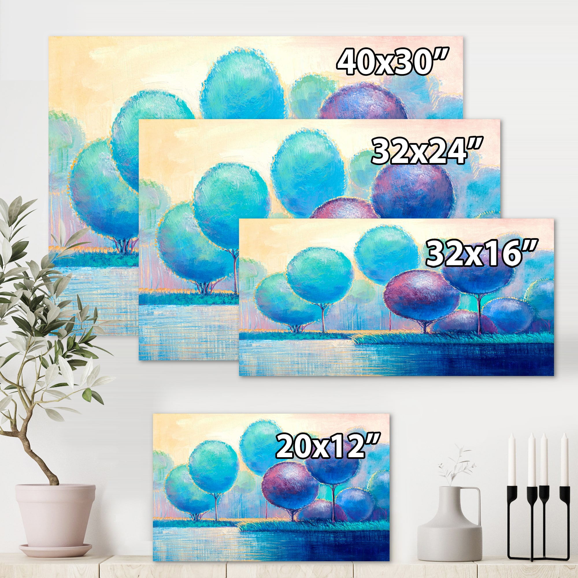 Designart - Colourful Ornamental Trees V - Modern Canvas Wall Art Print