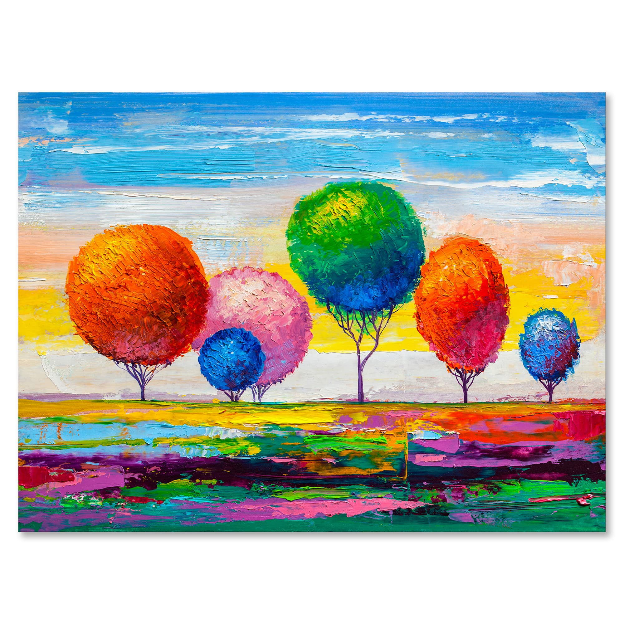 Designart - Colourful Ornamental Trees VI - Modern Canvas Wall Art Print