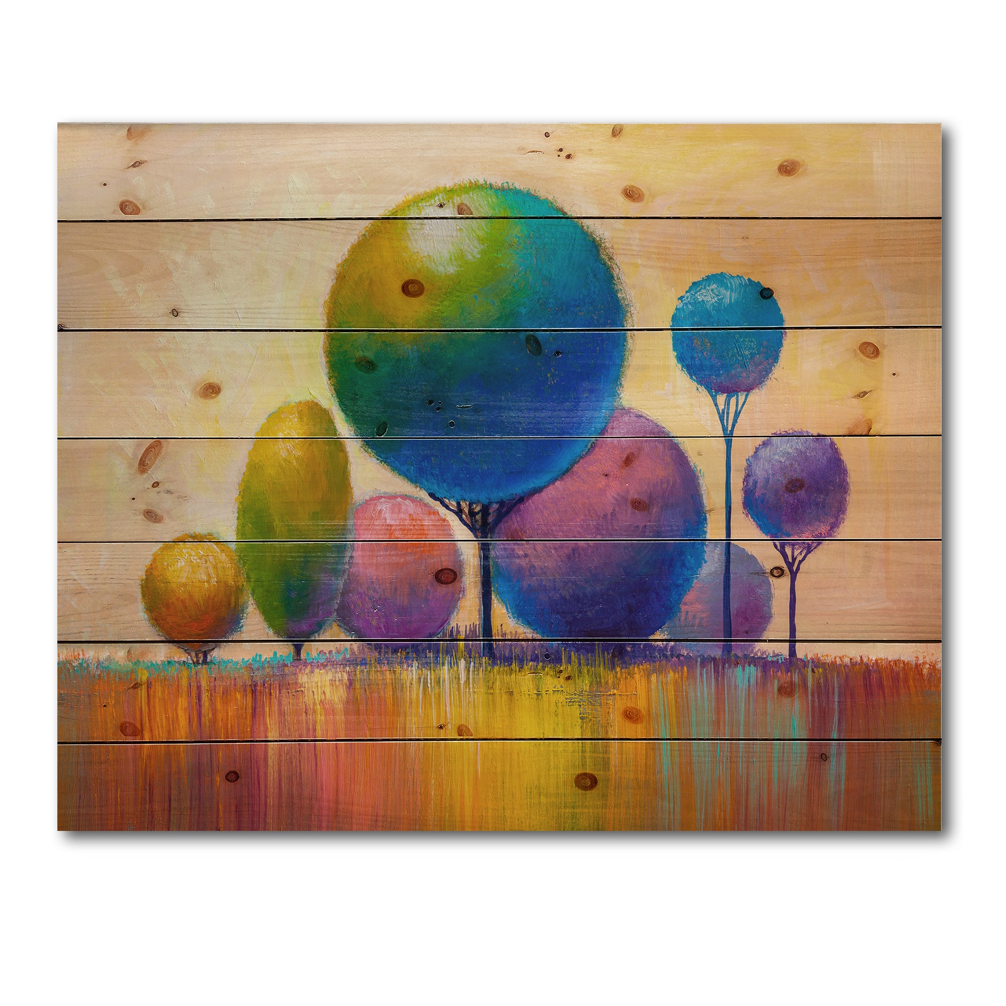 Designart - Colourful Ornamental Trees VIII - Modern Print on Natural Pine Wood