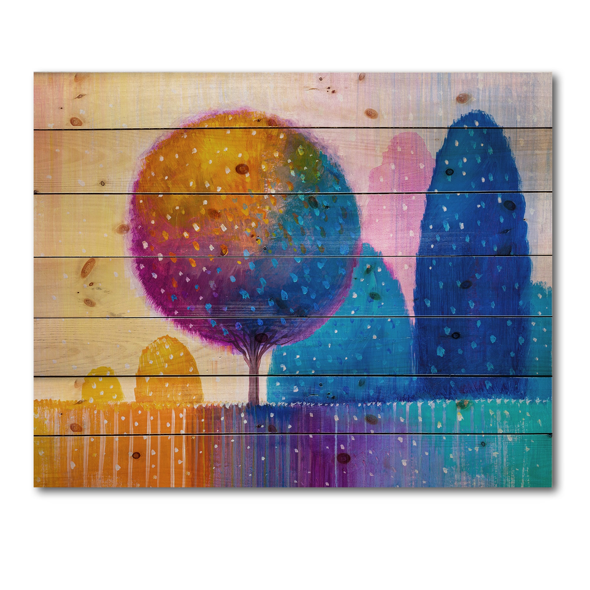 Designart - Colourful Ornamental Trees X - Modern Print on Natural Pine Wood