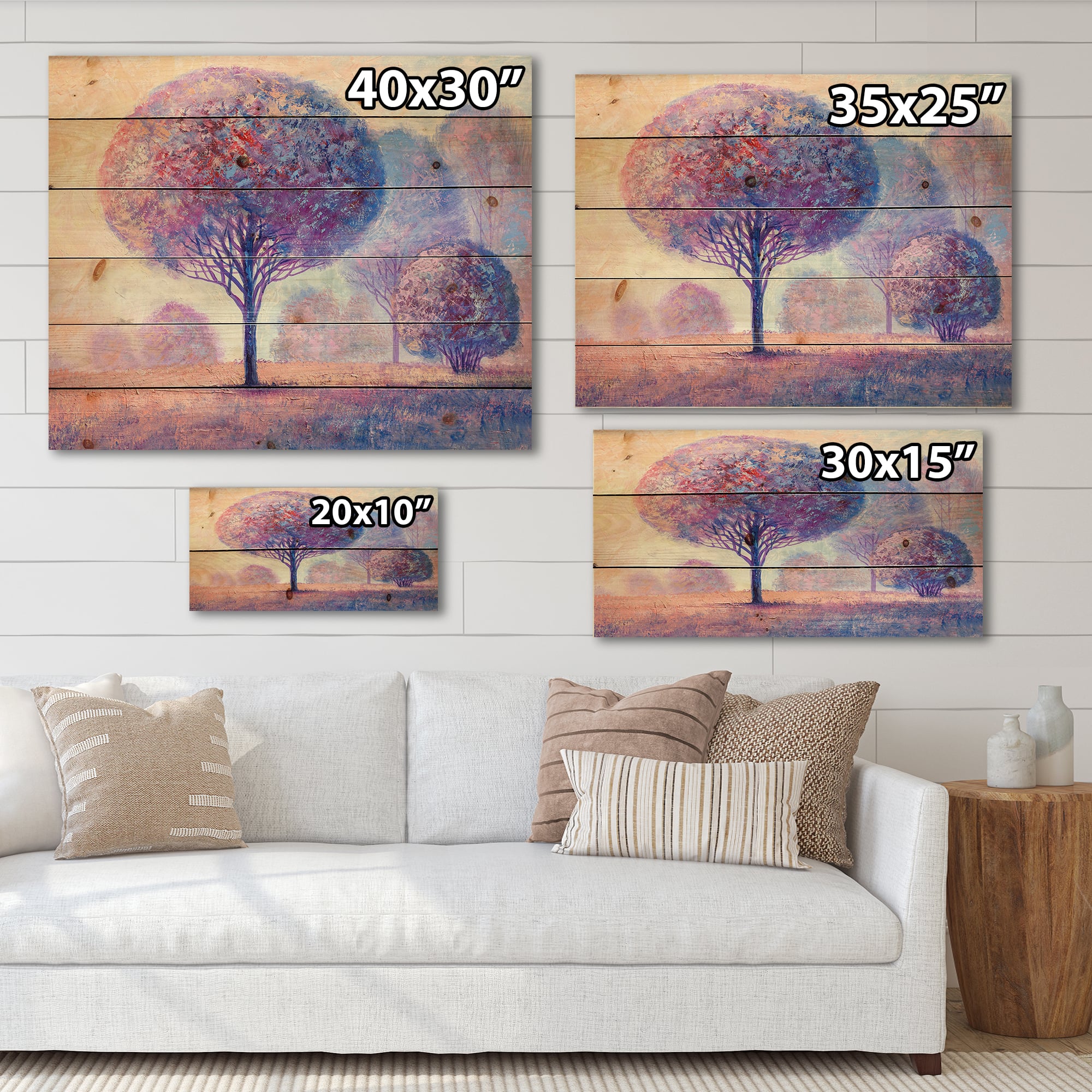 Designart - Colourful Trees Impression II - Traditional Print on Natural Pine Wood