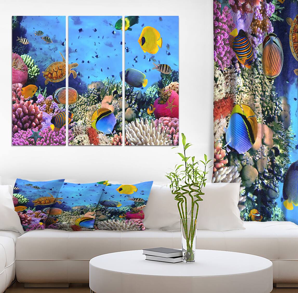 Designart - Coral Reef Coral Colony - Sea & Shore Nautical Photographic on Wrapped Canvas set