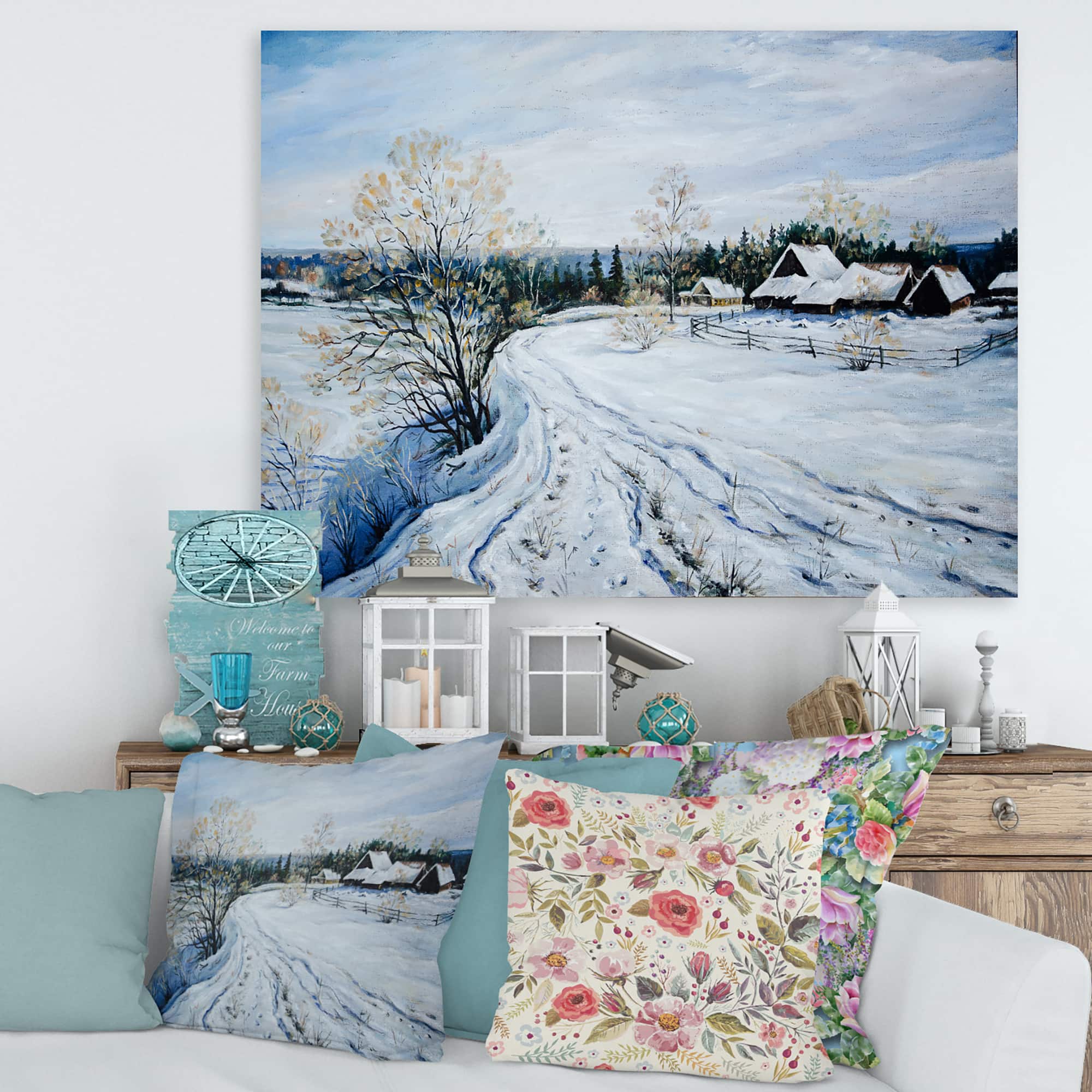 Designart - Country Road In Winter Times II - Traditional Canvas Wall Art Print