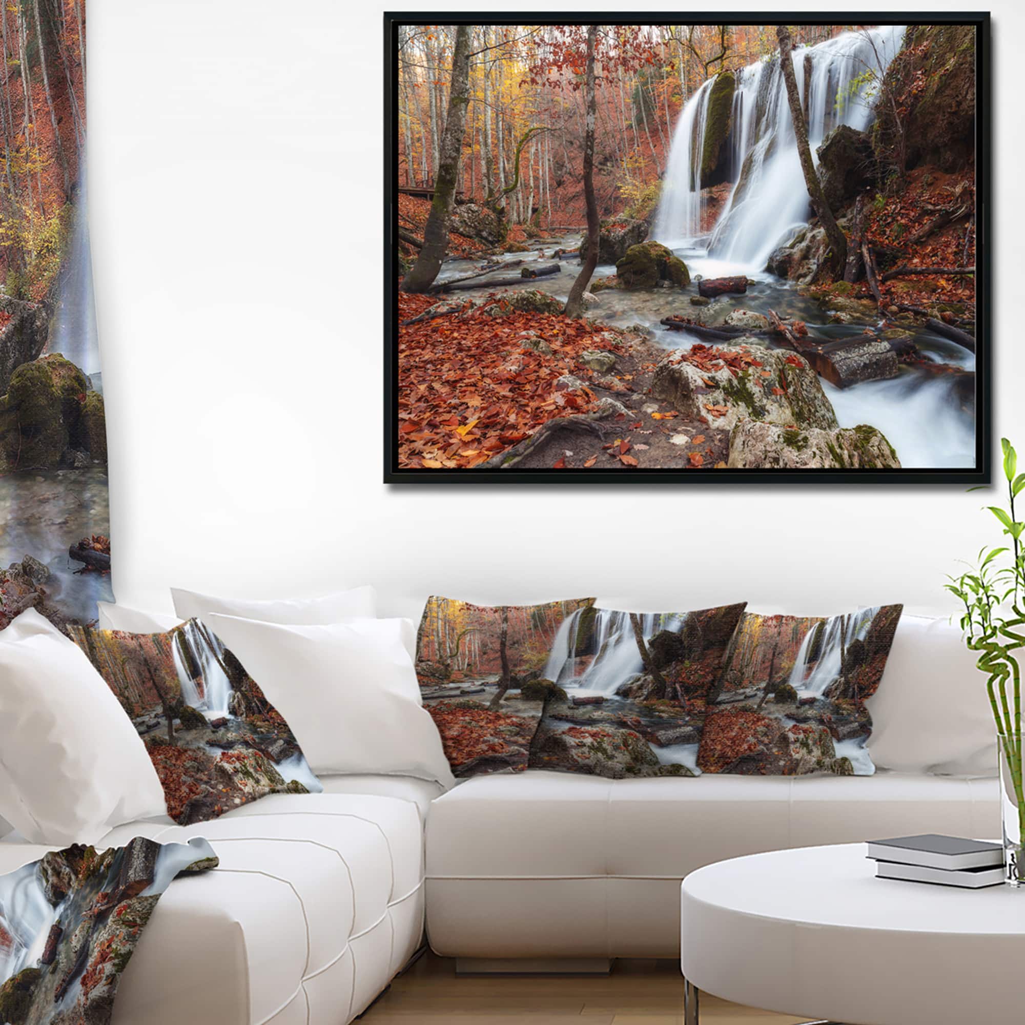 Designart - Crimea Waterfall in the Fall - Landscape Photo Canvas Art Print in Black Frame