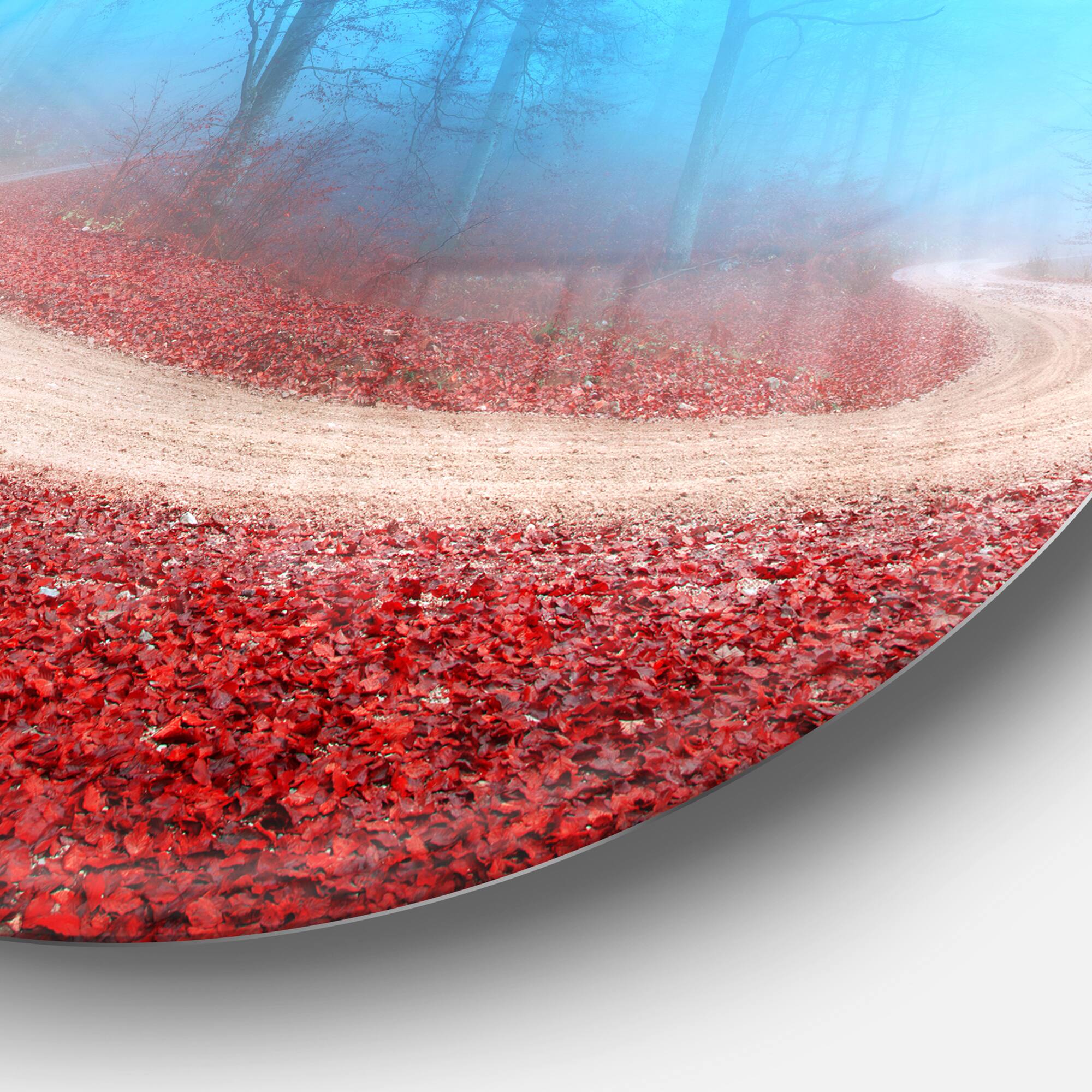Designart - Curved Road in Autumn Forest' Circle Landscape Circle Metal Wall Art