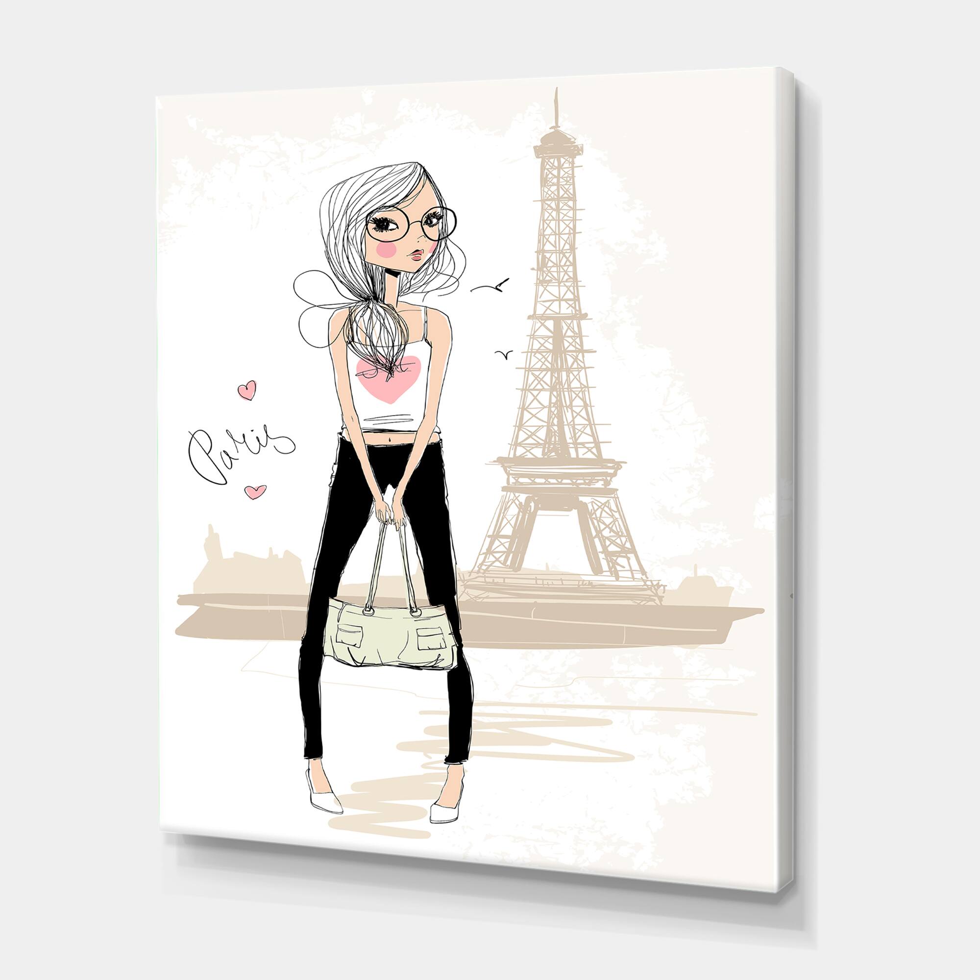Designart - Cute Girl By The Tour Eiffel In Paris - Children's Art Canvas Wall Art Print