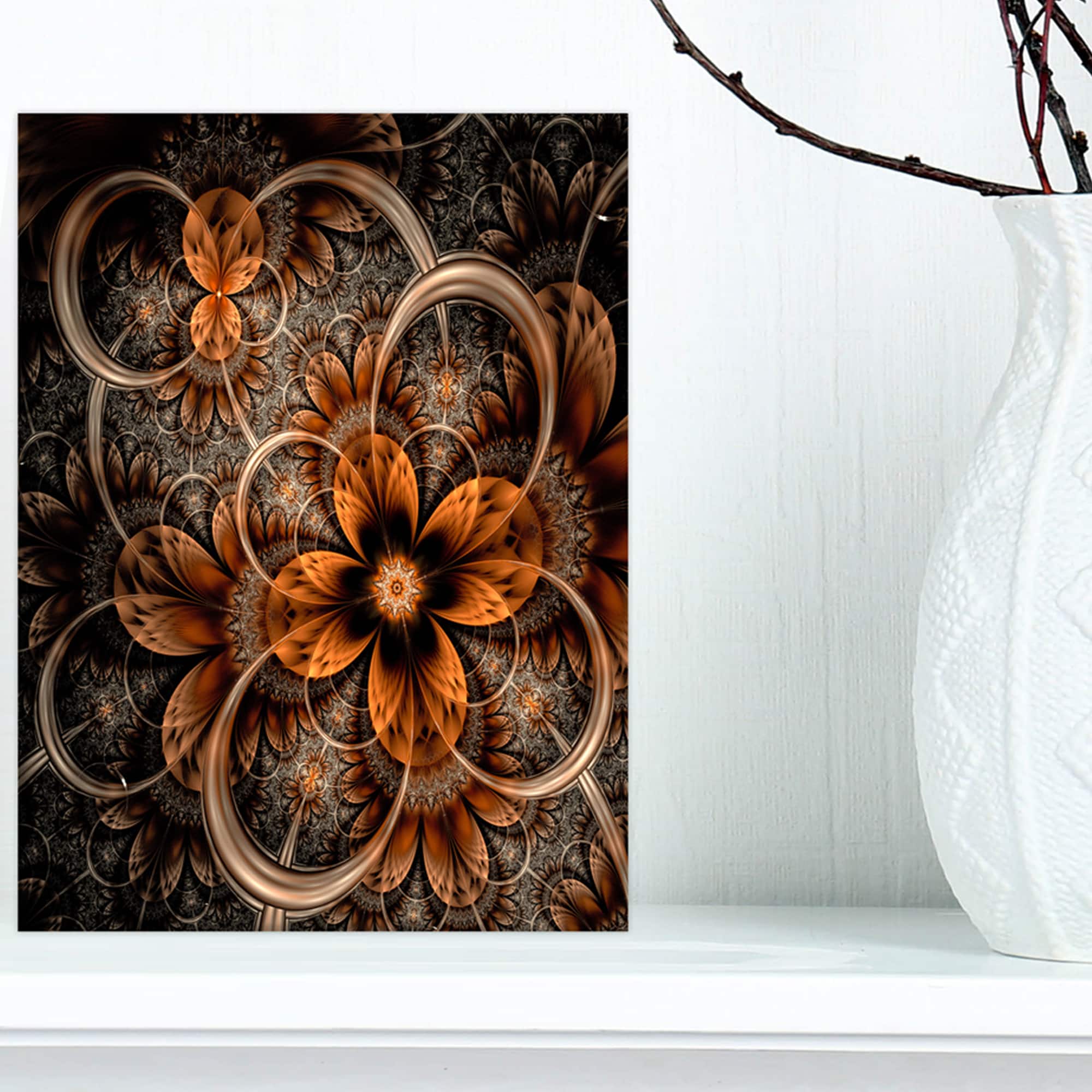 Designart - Dark Orange Digital Art Fractal Flower - Floral Canvas Art Print