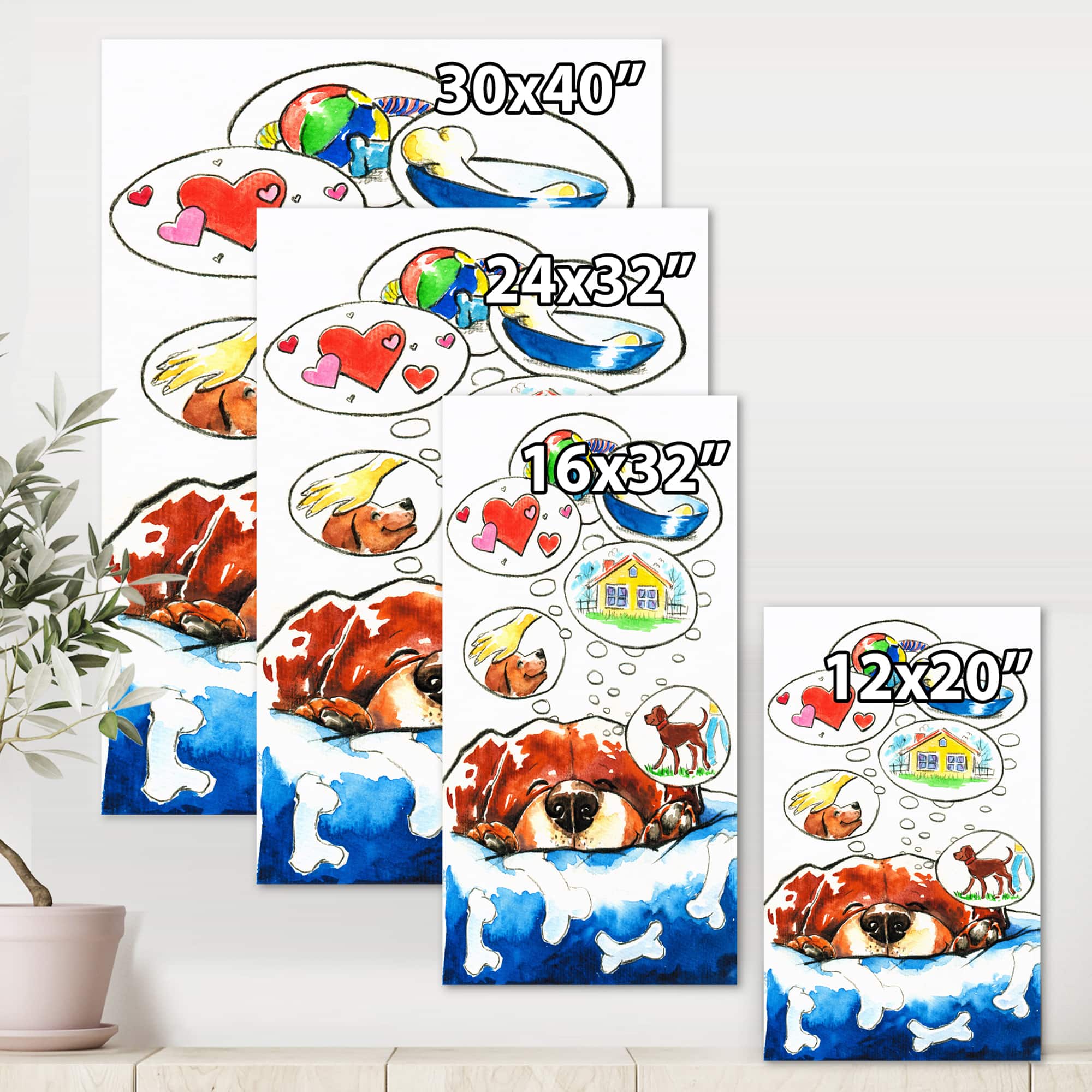 Designart - Dog Dreams - Children's Art Canvas Wall Art Print