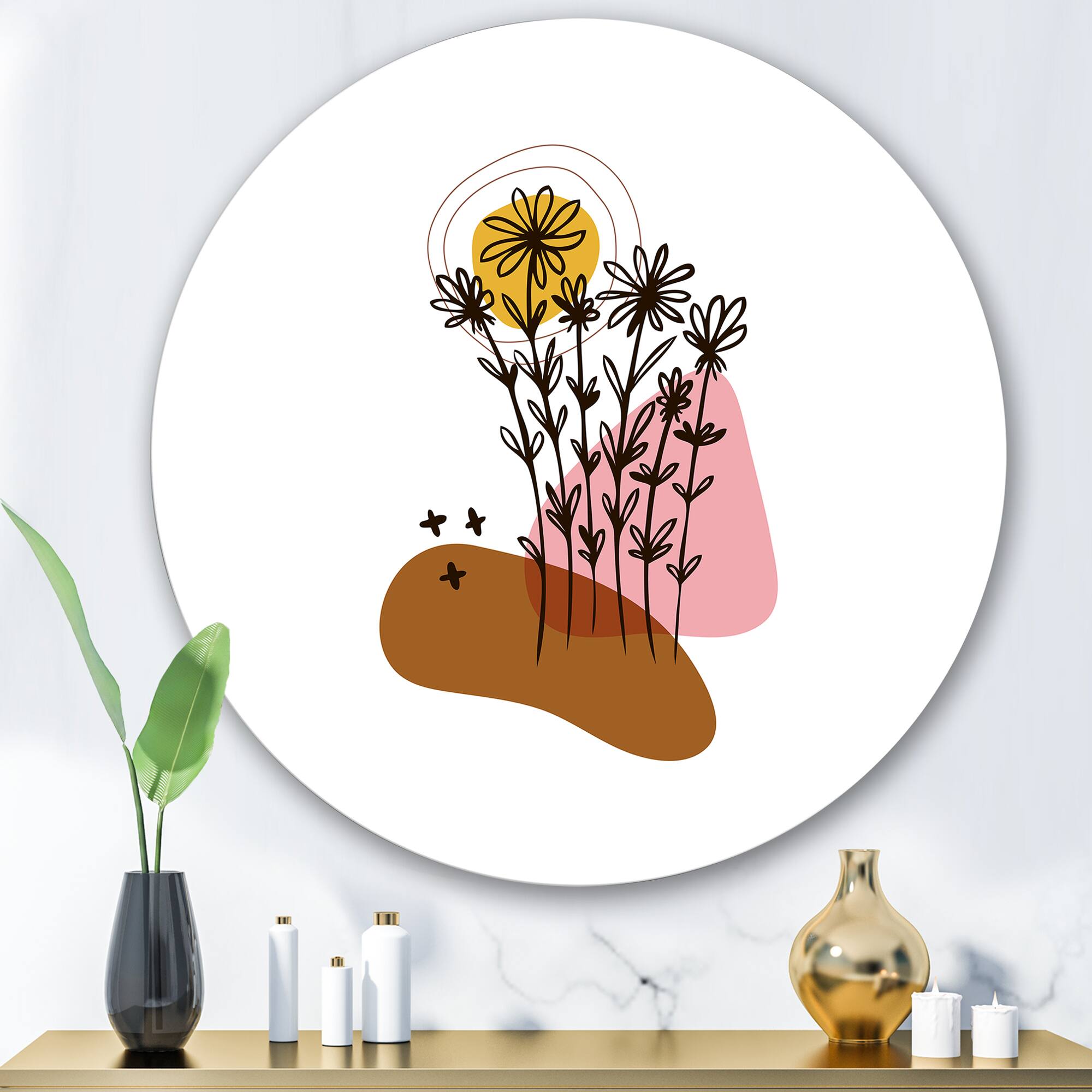 Designart - Elementary Shapes With Abstract Flowers Plants I - Modern Metal Circle Wall Art