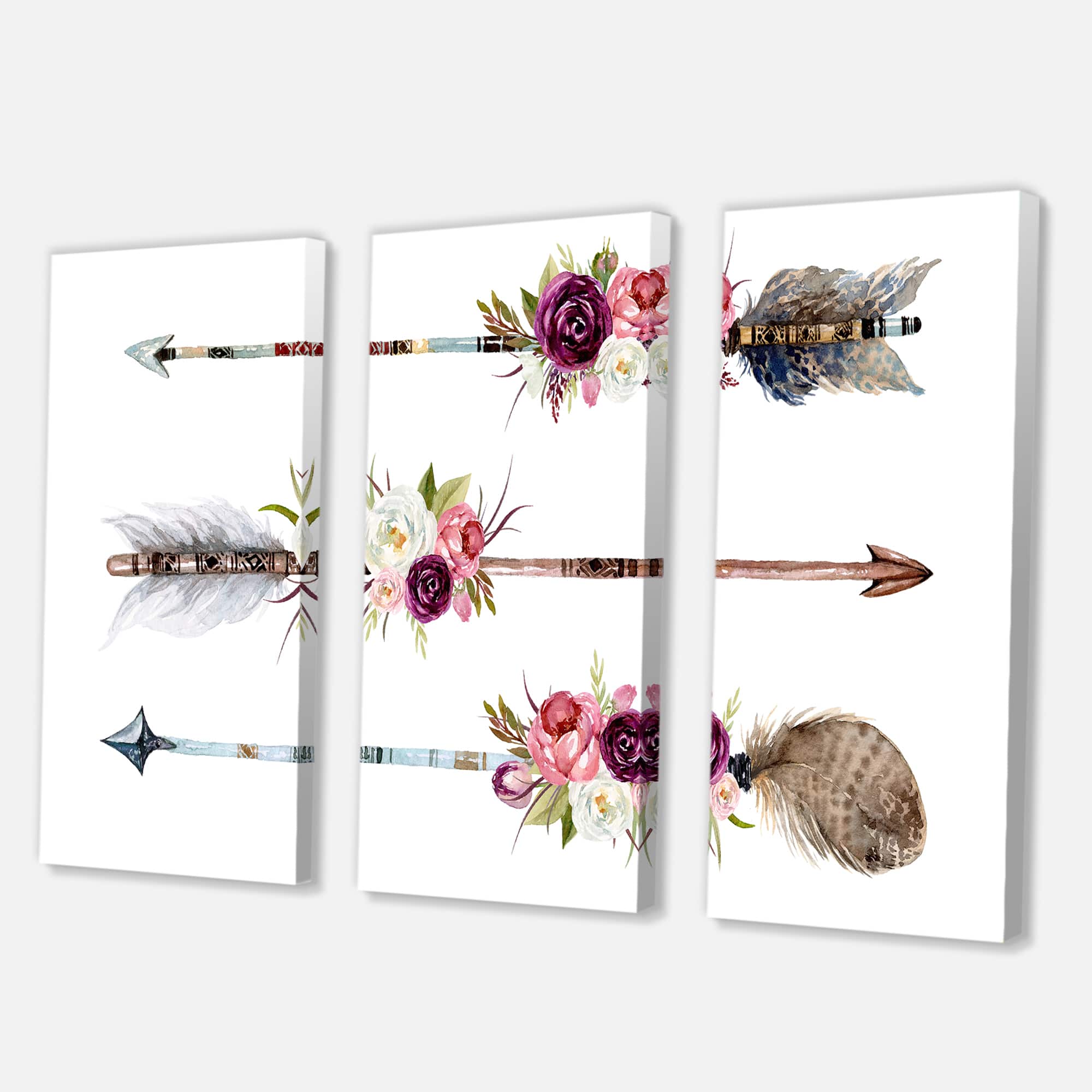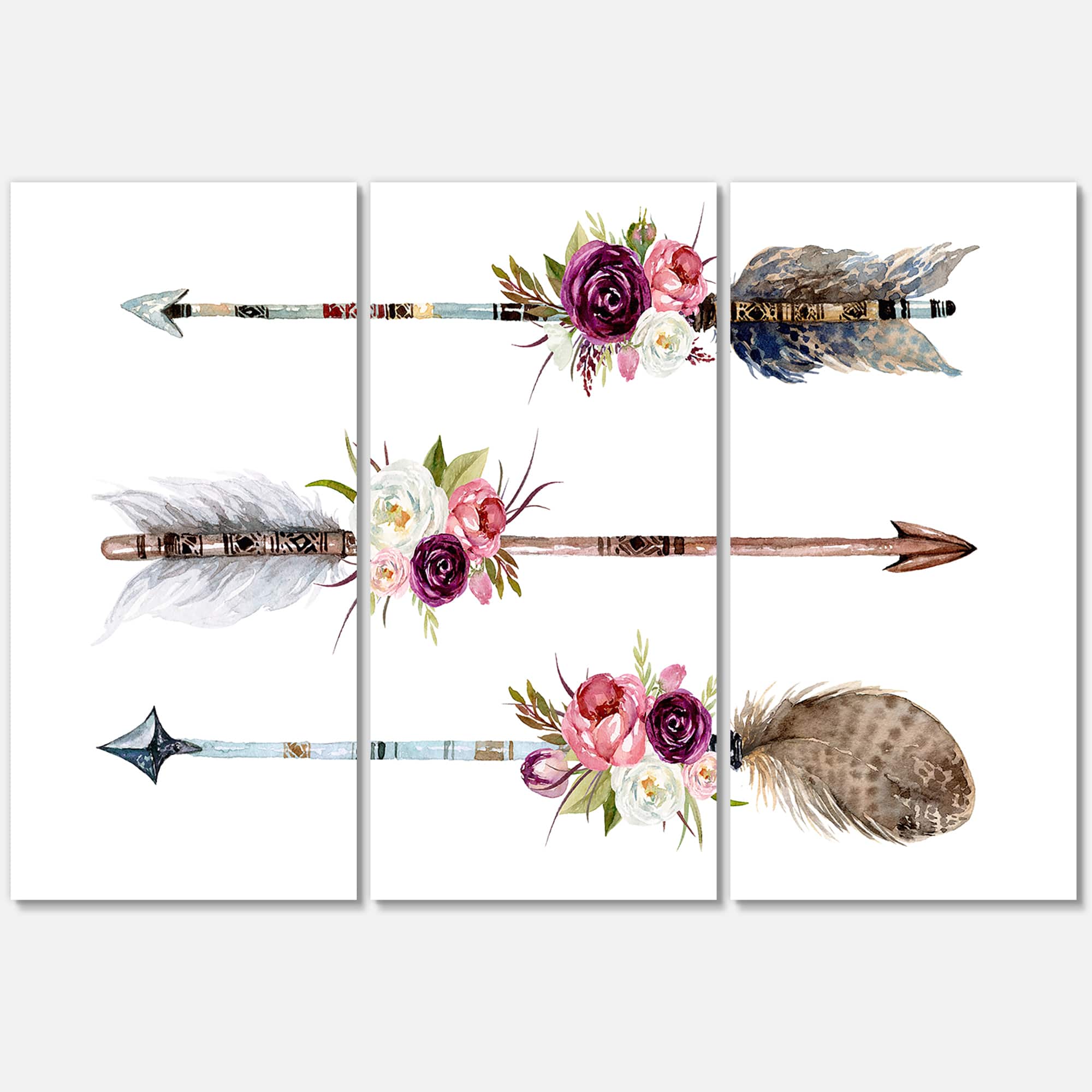 Designart - Ethnic Feathers and Flowers On Native Arrows III - Bohemian & Eclectic Canvas Wall Art Print