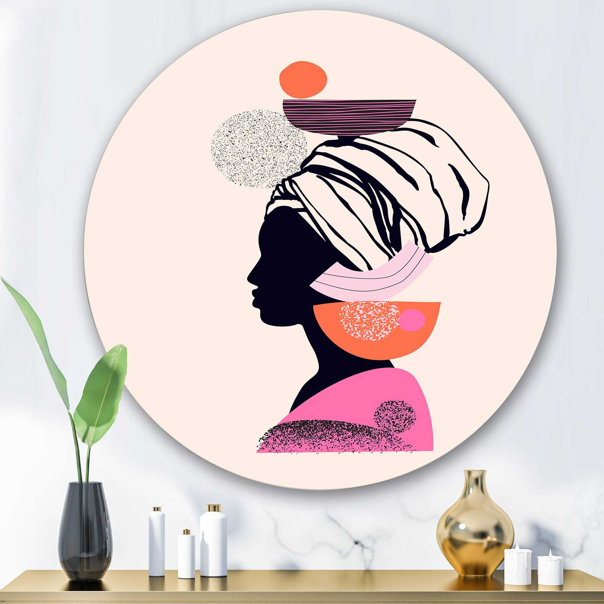 Designart - Ethnic Portrait of Afro American Woman - Modern Metal Circle Wall Art
