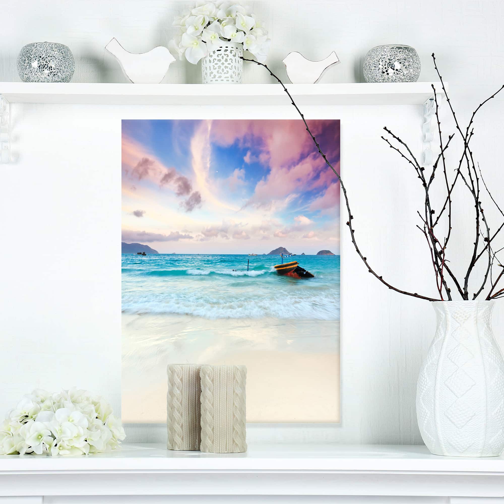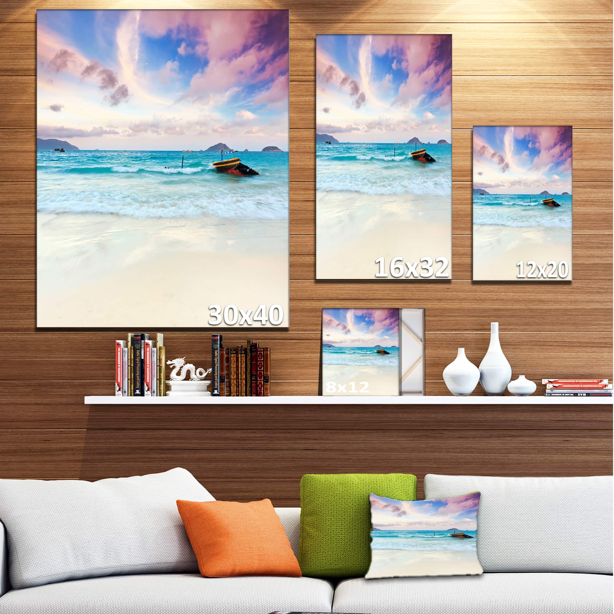 Designart - Exotic Seashore Sunset Over Blue Sea - Extra Large Seascape Art Canvas