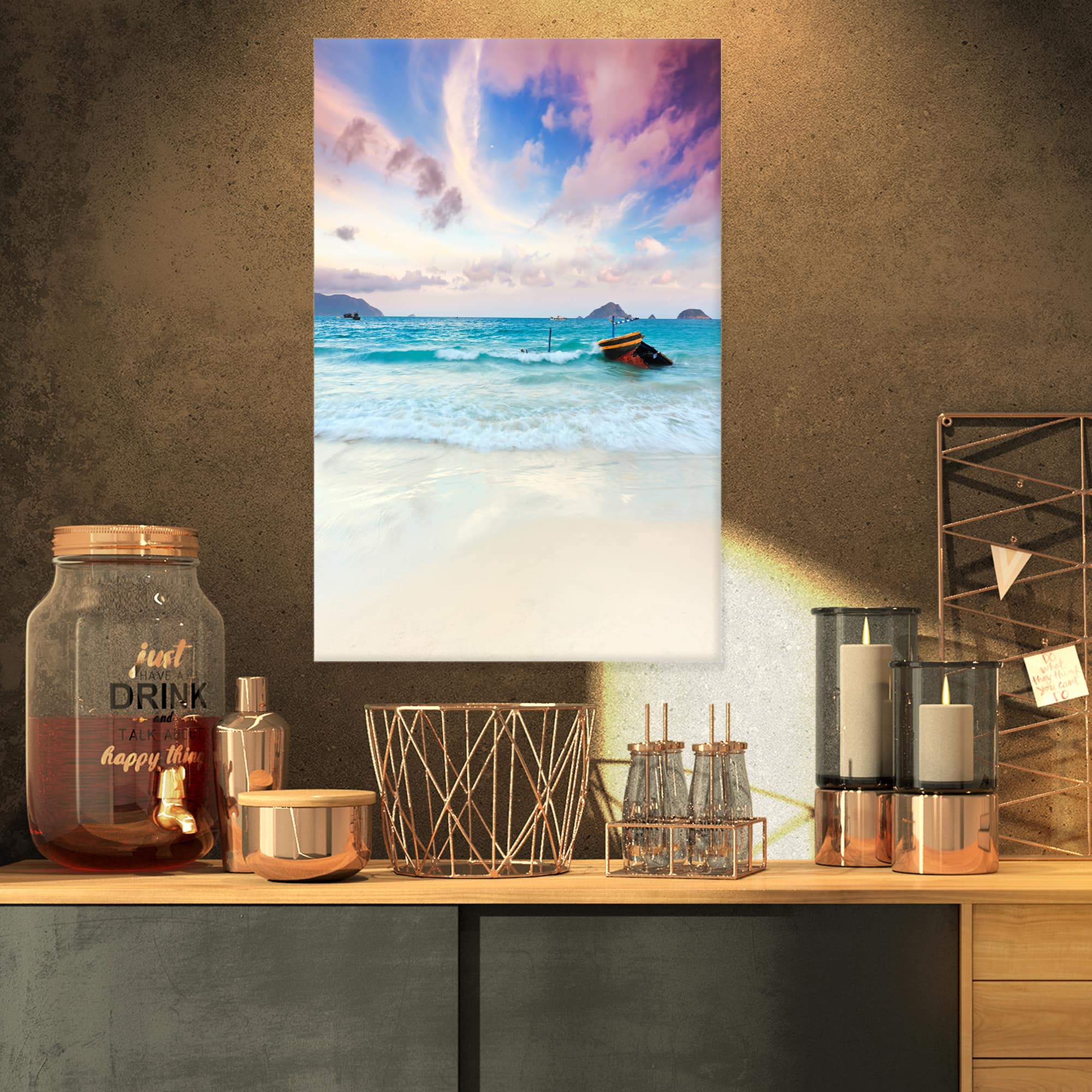Designart - Exotic Seashore Sunset Over Blue Sea - Extra Large Seascape Art Canvas