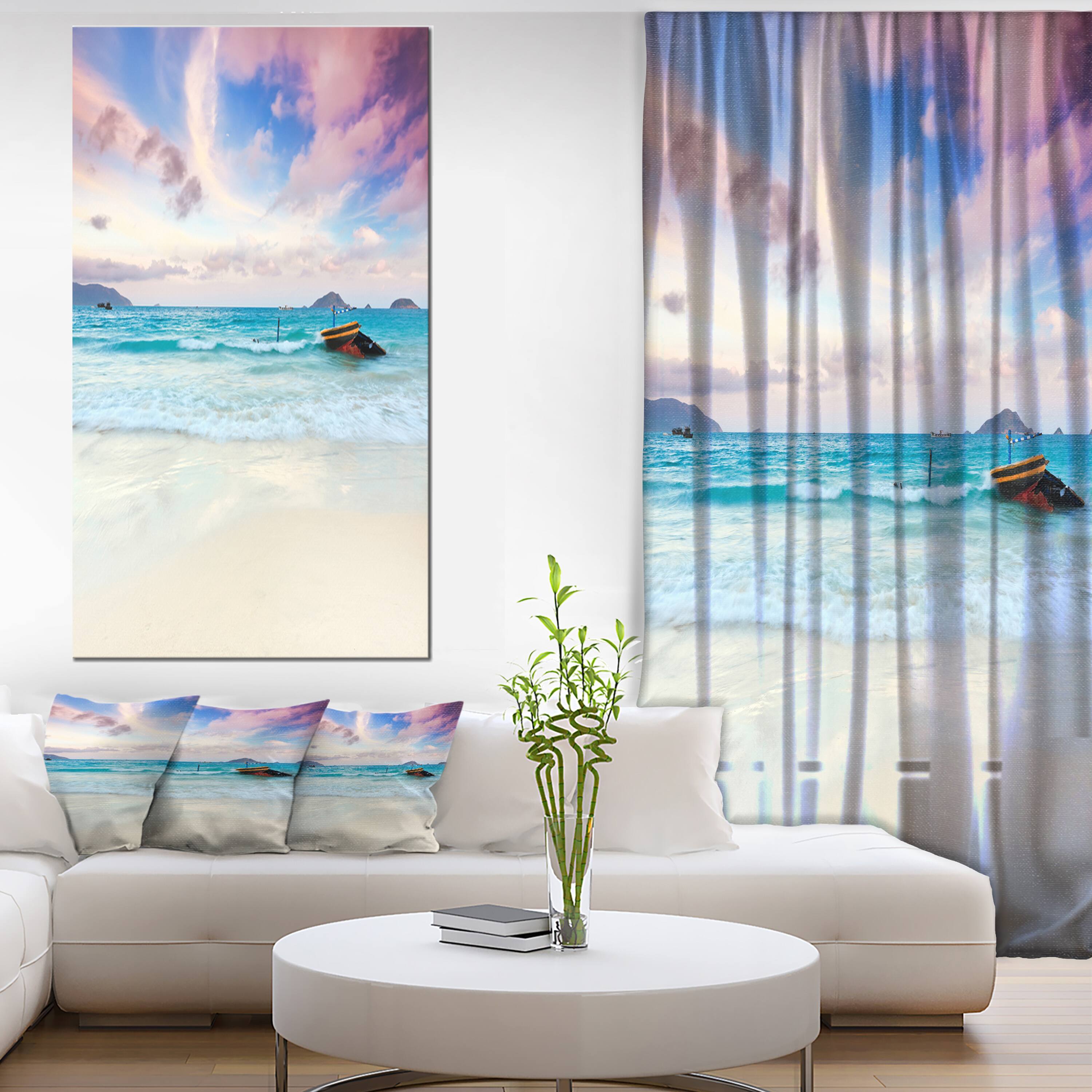 Designart - Exotic Seashore Sunset Over Blue Sea - Extra Large Seascape Art Canvas