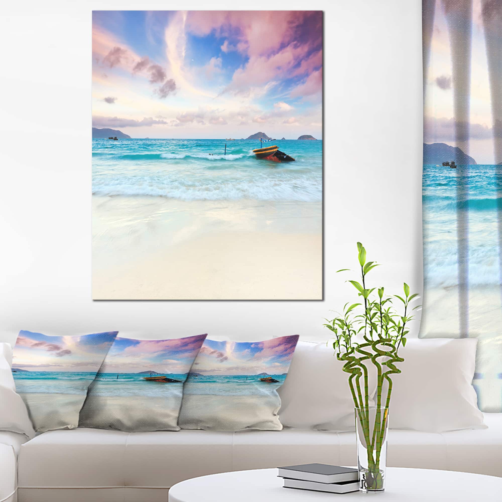 Designart - Exotic Seashore Sunset Over Blue Sea - Extra Large Seascape Art Canvas