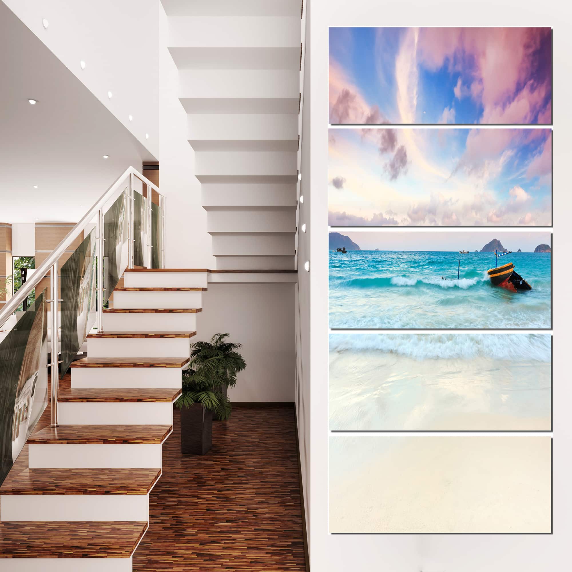 Designart - Exotic Seashore Sunset Over Blue Sea - Extra Large Seascape Art Canvas