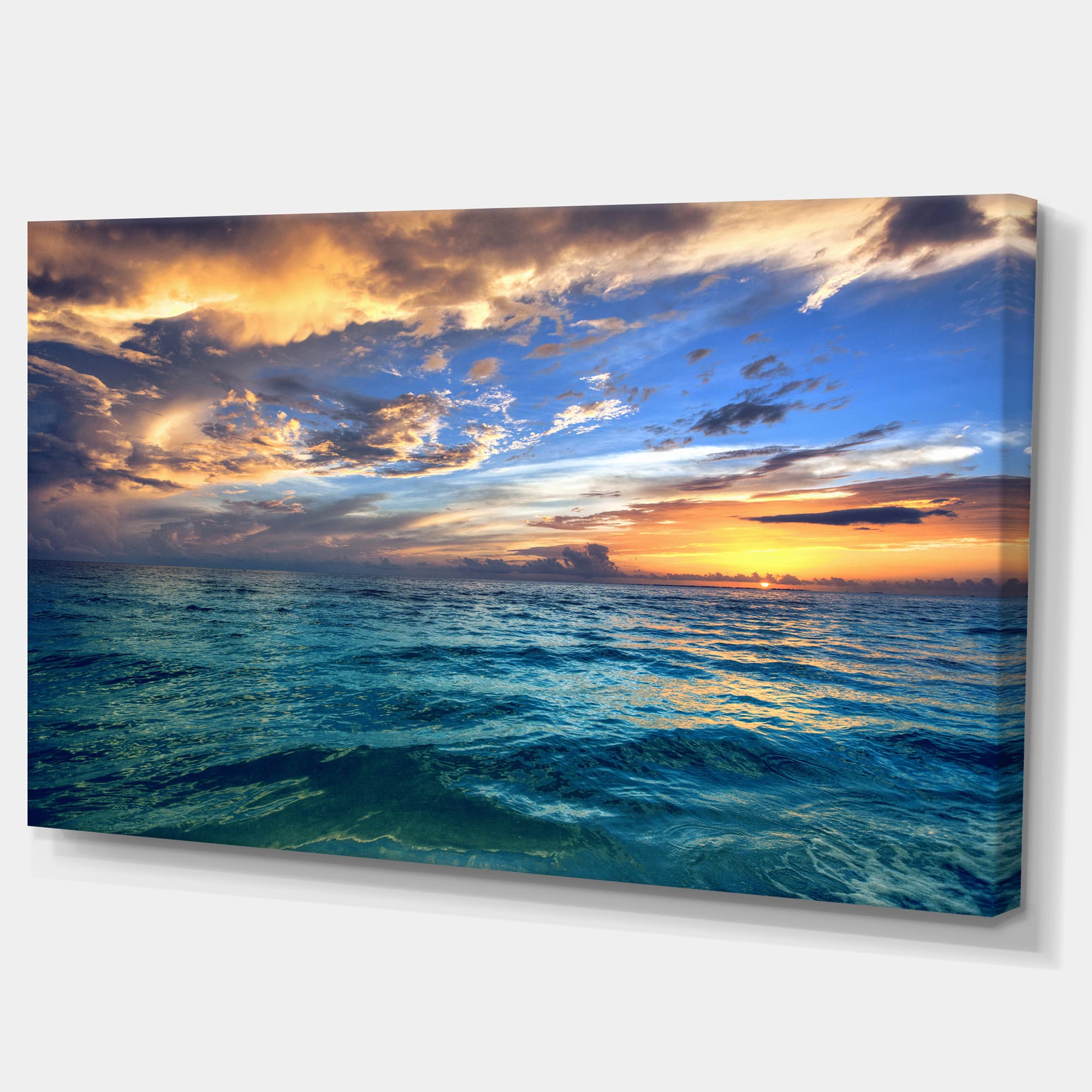 Designart - Exotic Tropical Beach at Sunset - Modern Seashore Canvas Art