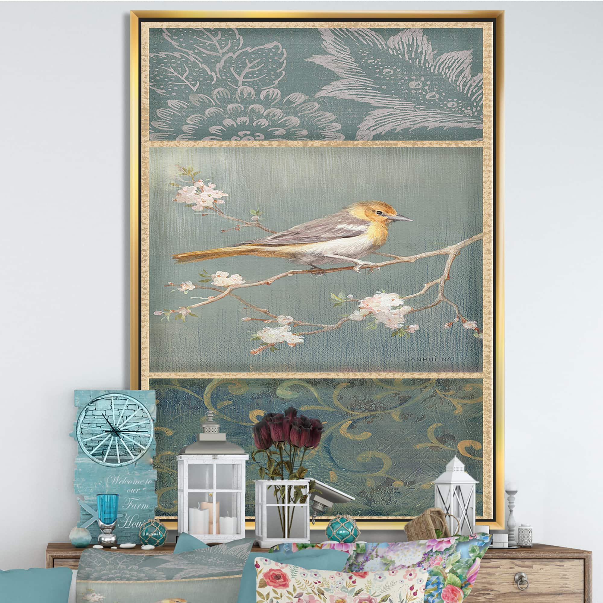 Designart - Farmhouse Triptych of Blue Ornaments And Oriole - Farmhouse Canvas in Gold Frame