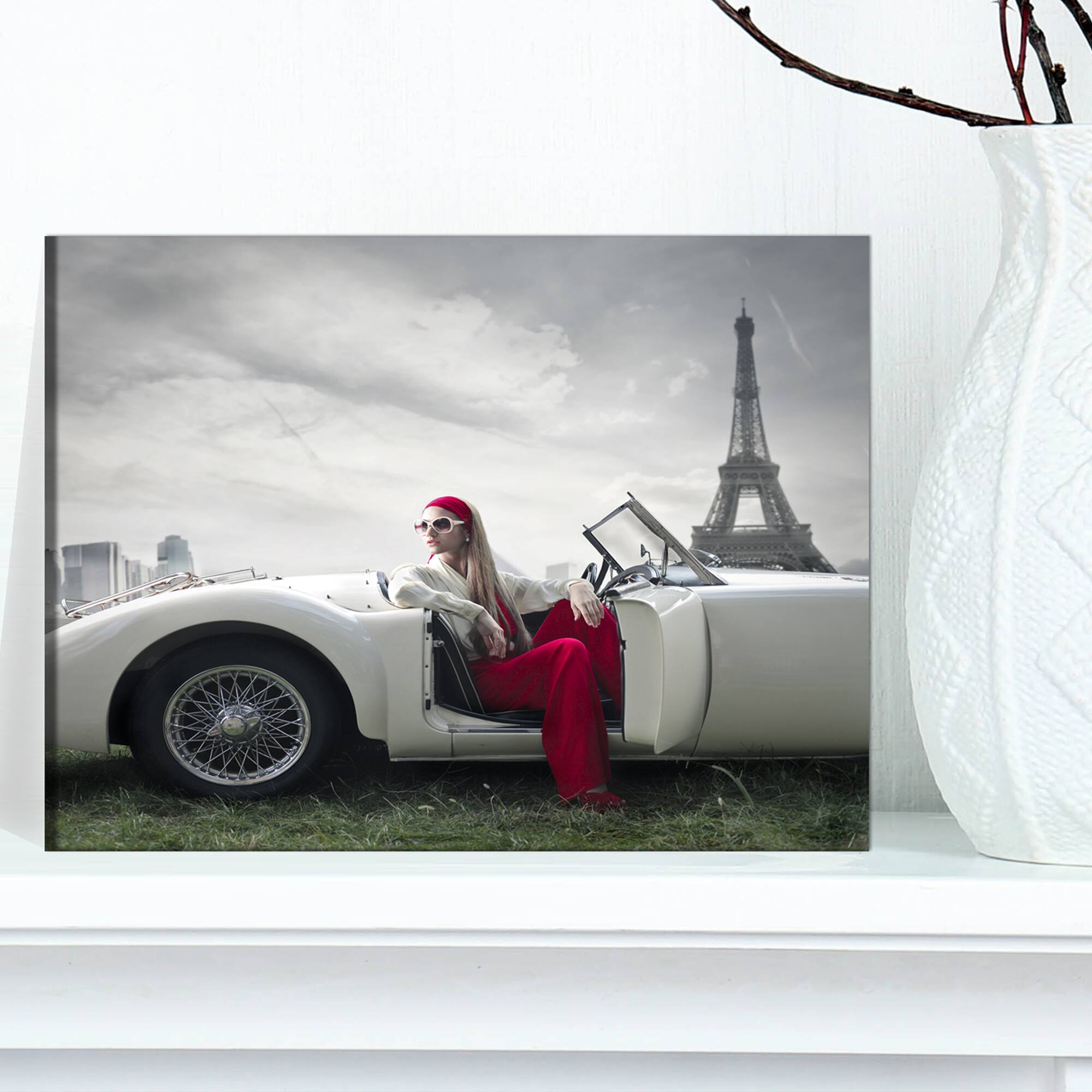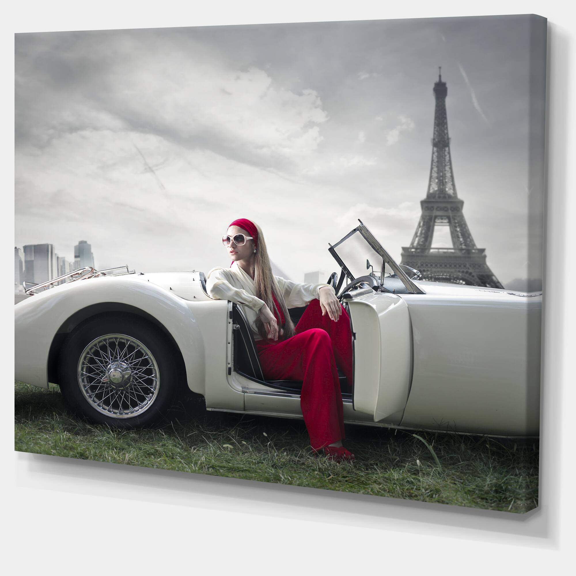Designart - Fashion Woman in Car - Large Cars Canvas Art Print