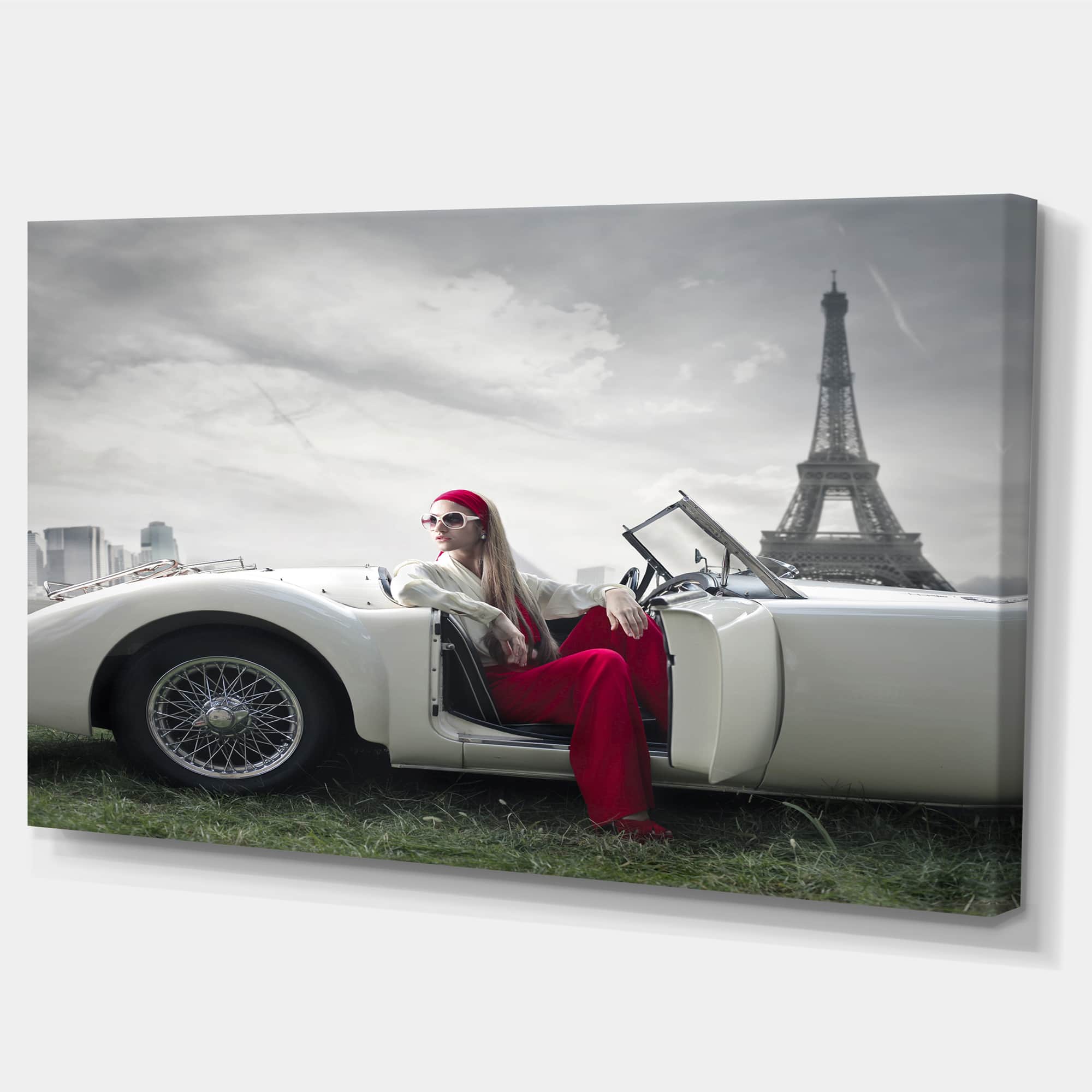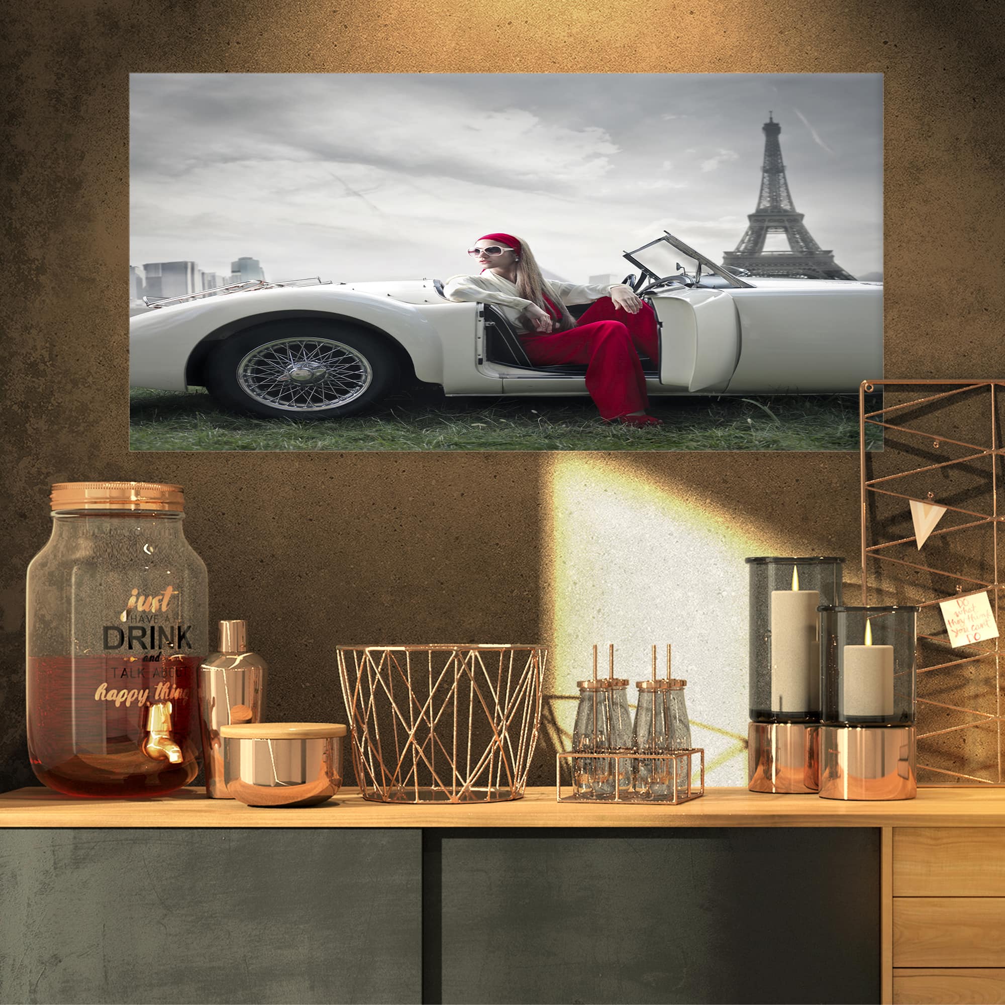 Designart - Fashion Woman in Car - Large Cars Canvas Art Print
